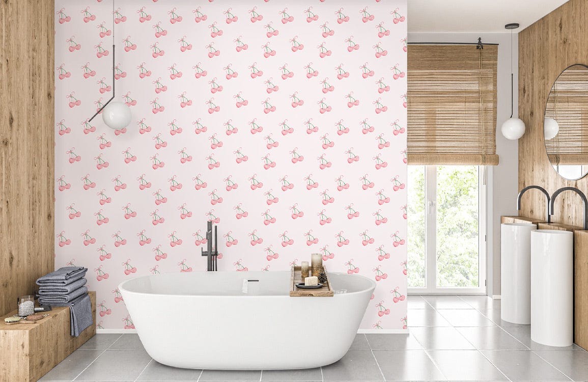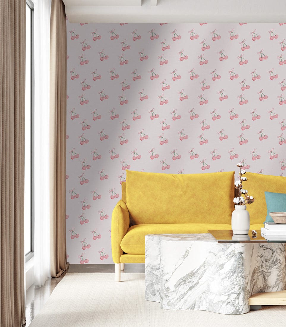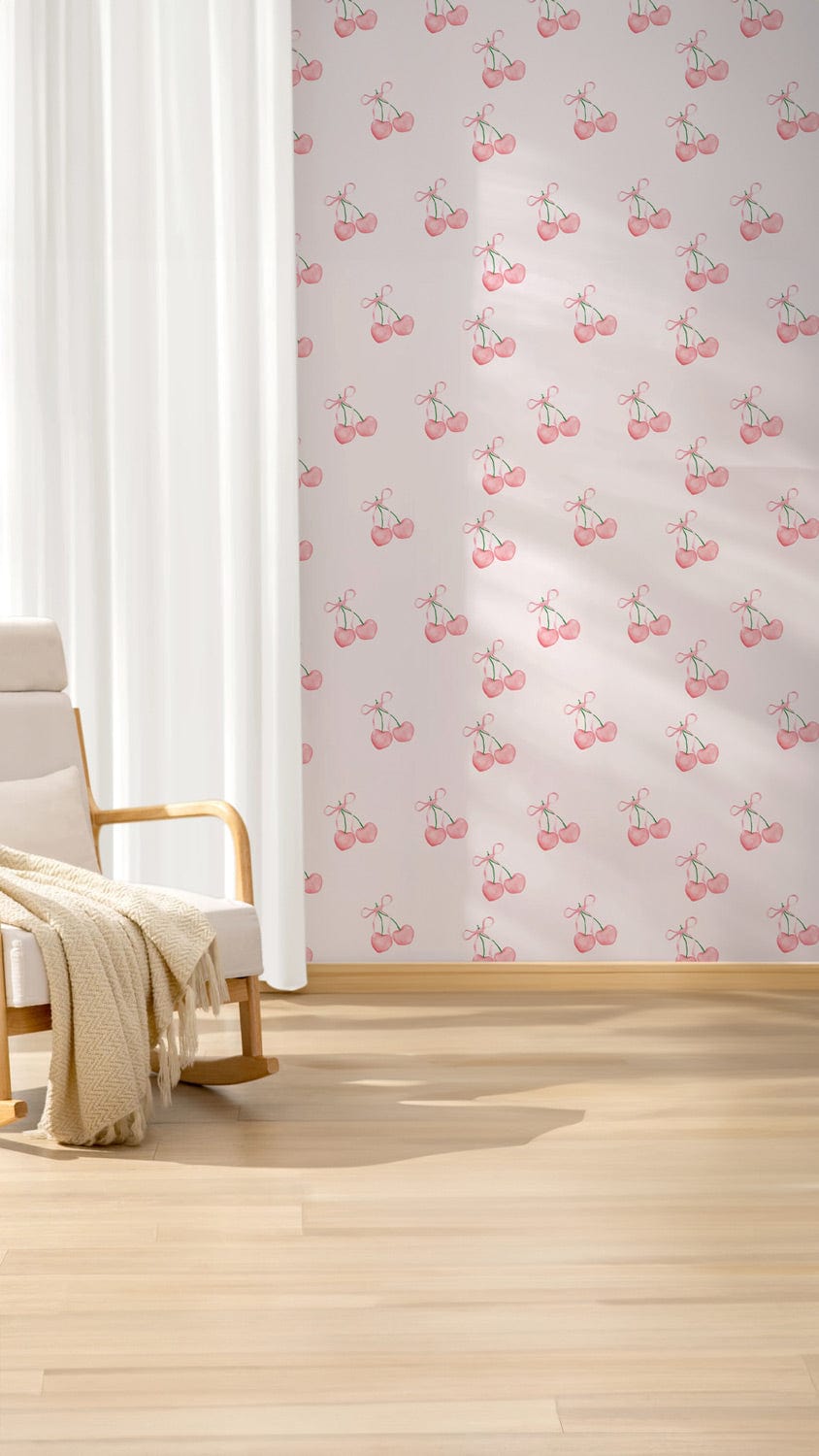 Immerse any space in charming elegance with the Heart Cherry Mural Wallpaper. Delicate cherry motifs dance across a subtle cream backdrop, creating a sophisticated ambience that suits both quaint and modern settings. Its fine detailing and playful design provide a timeless aesthetic that appeals to a wide range of interior décors, inviting a feeling of warmth and gentle nostalgia.