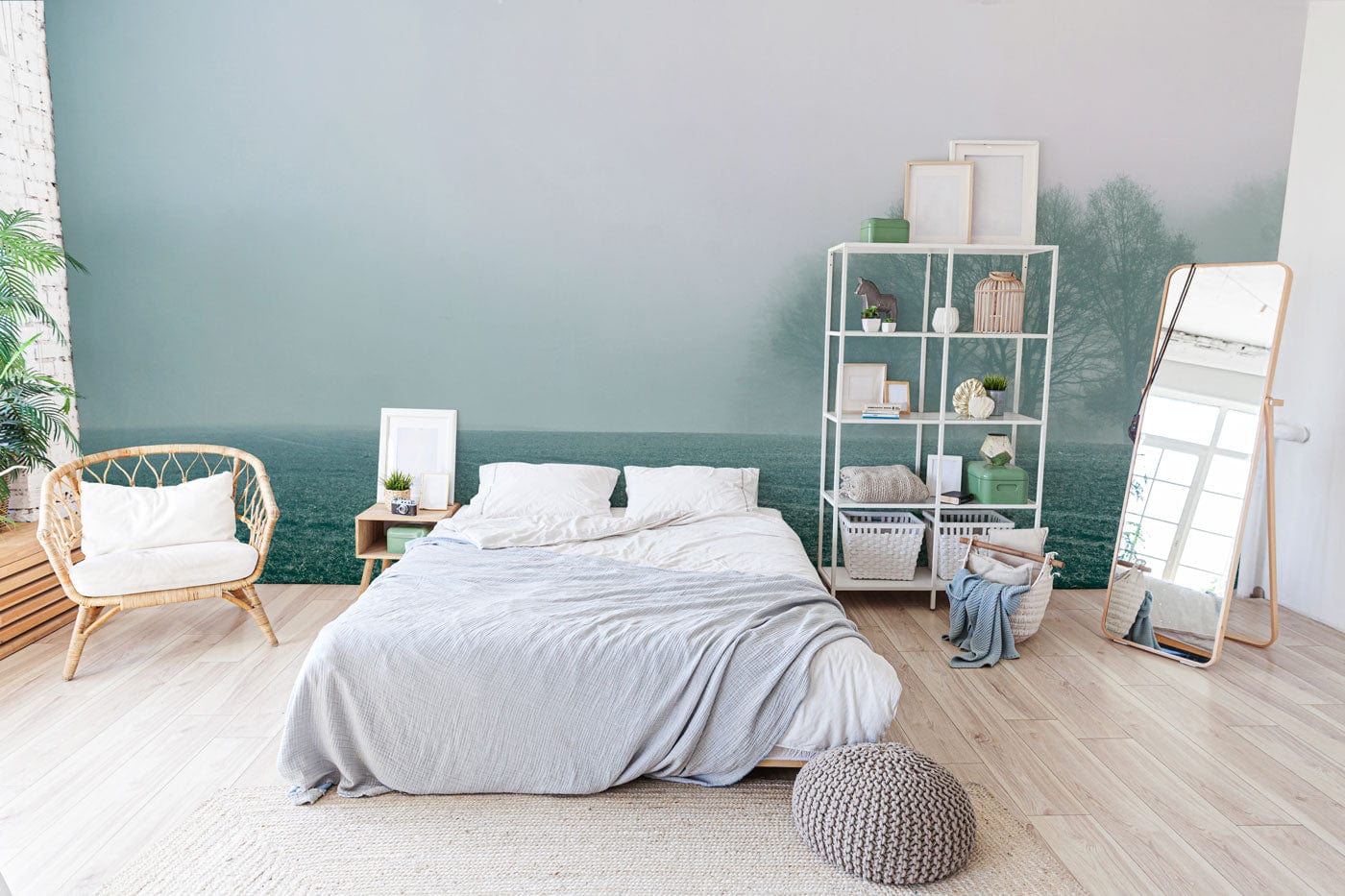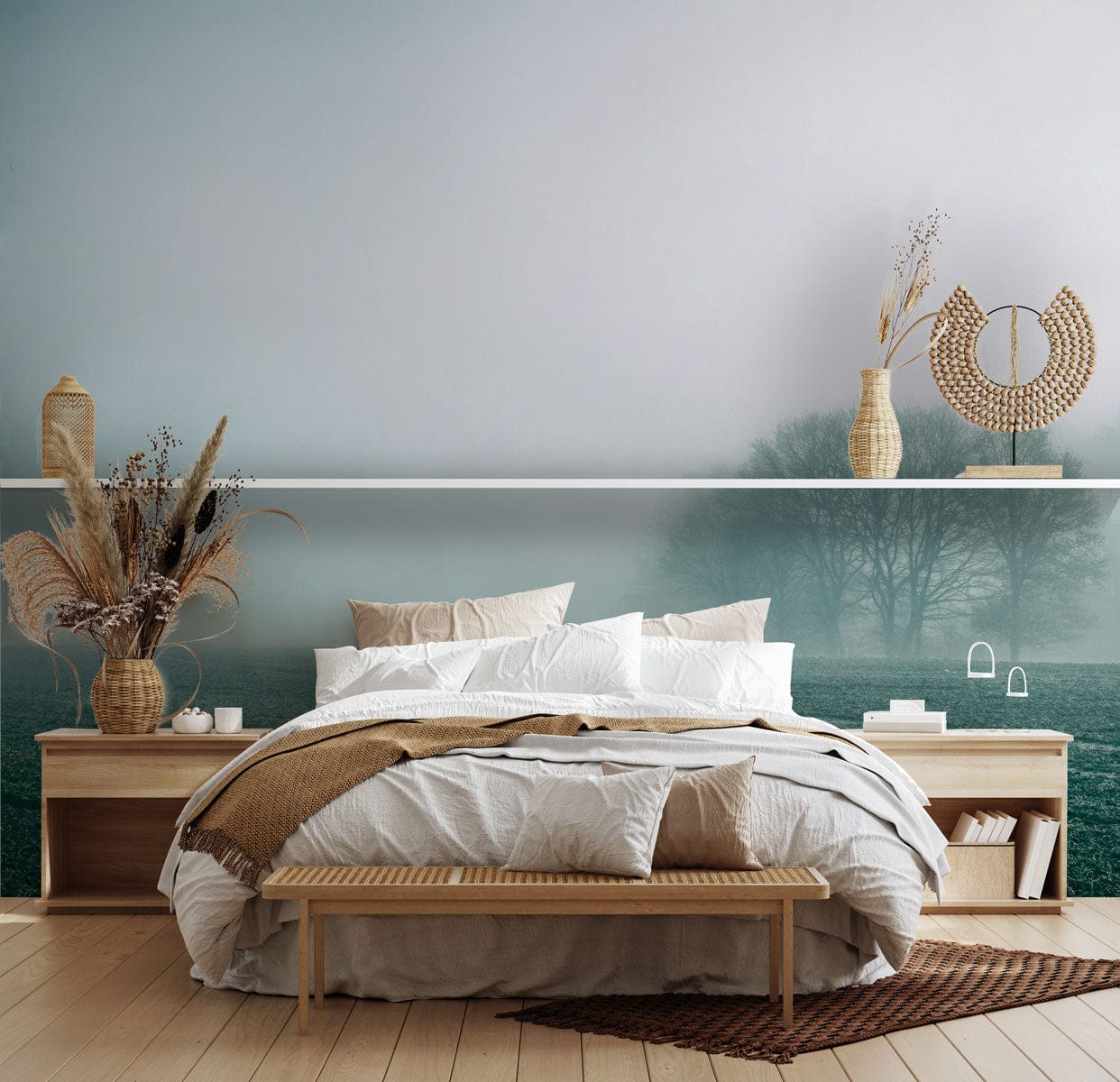 Immerse your space in the captivating tranquillity of the Heavy Fog Field Wallpaper Mural. This masterpiece effortlessly conjures an ethereal landscape, where mist gently drapes over a serene field, creating an exquisite backdrop of depth and intrigue. Subtle gradients of blue and grey interplay to offer a sophisticated aesthetic that complements both contemporary and traditional interiors, making it a timeless choice for any discerning home.