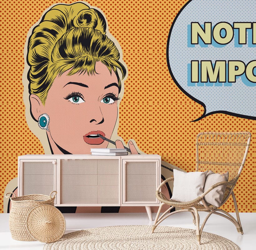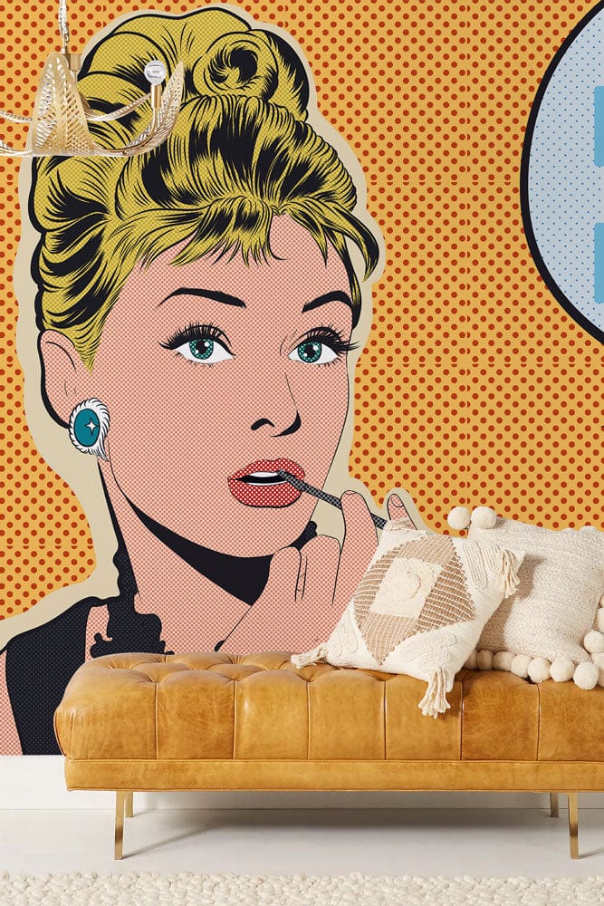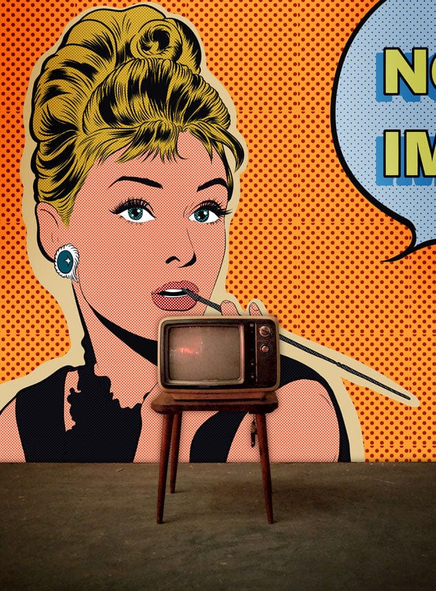 The Hepburn Impression Wallpaper Mural exudes a chic, retro charm that seamlessly blends classic elegance with modern flair. Featuring an iconic pop art depiction with striking linework and a bold speech bubble, it sets a vibrant yet refined tone in any space. Perfect for those who appreciate artistic details, the mural offers a sophisticated ambience that effortlessly complements various interior styles.