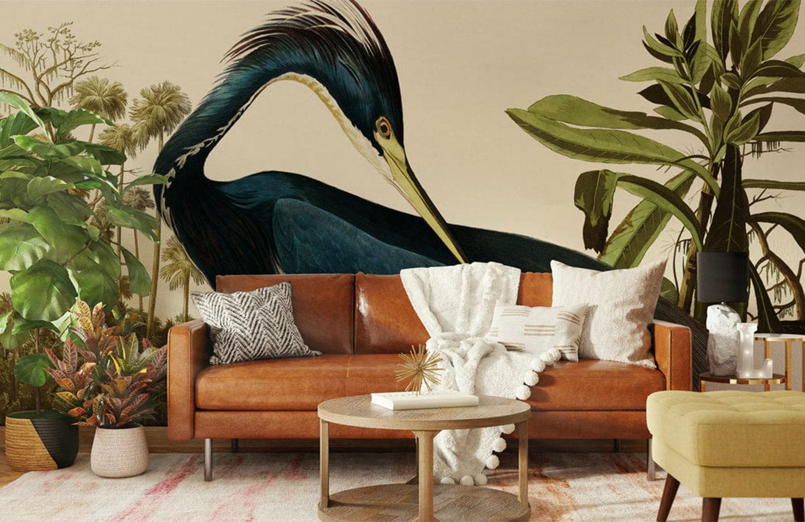 Bring the tranquillity of nature indoors with the Heron in Jungle Wallpaper Mural. This sophisticated design showcases a poised heron amidst lush foliage and serene waters, capturing the essence of a serene jungle oasis. The detailed artistry and rich textures offer a timeless elegance, making it an ideal choice for both traditional and contemporary spaces.