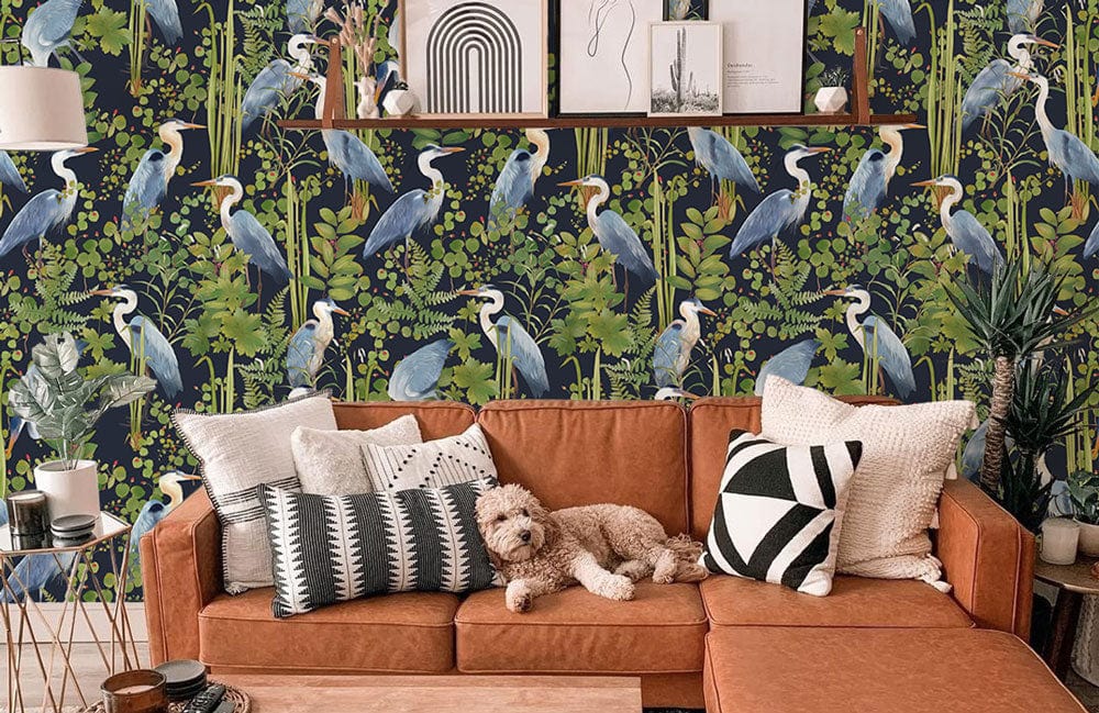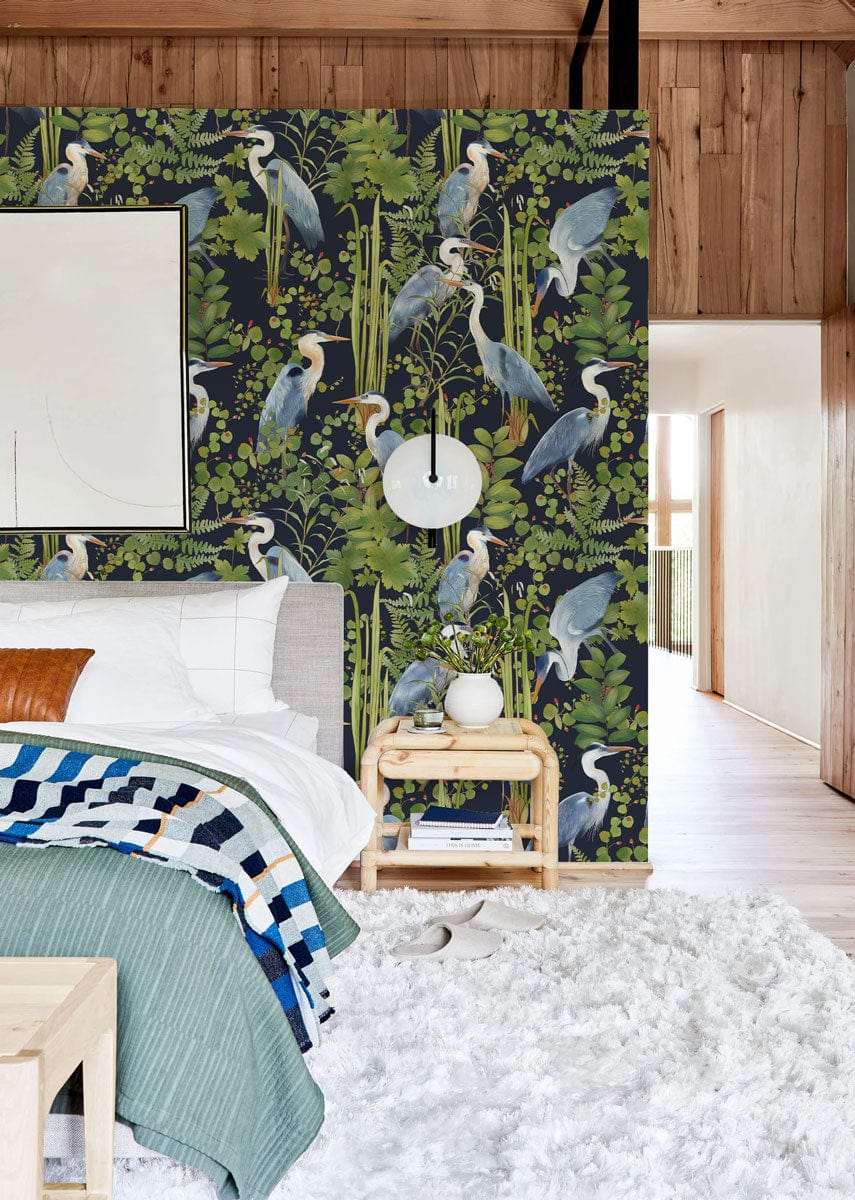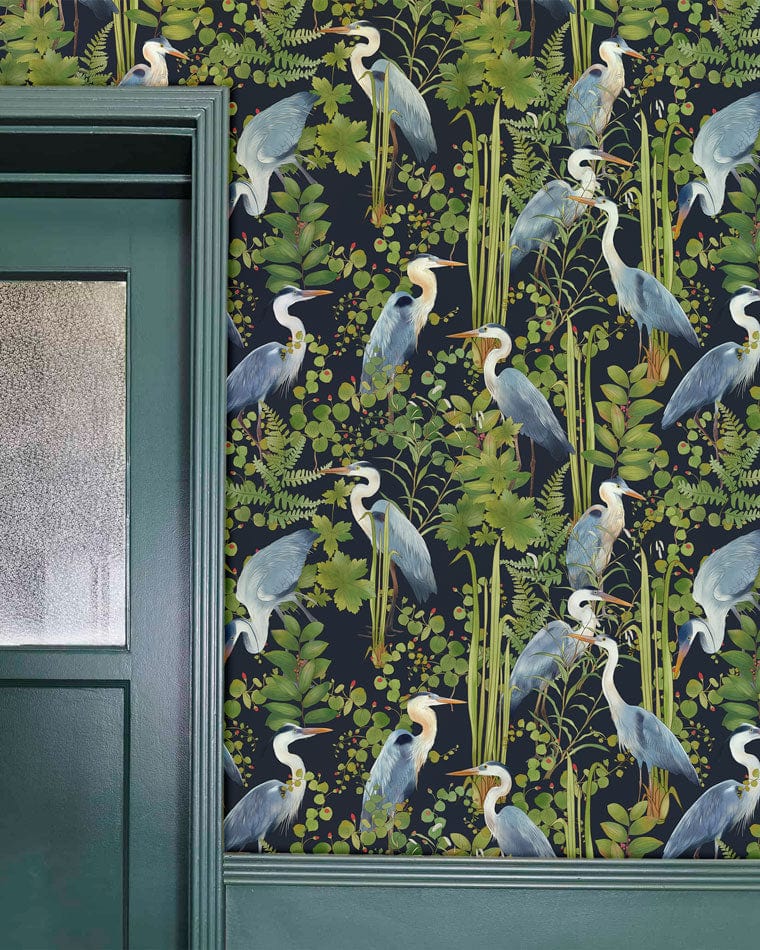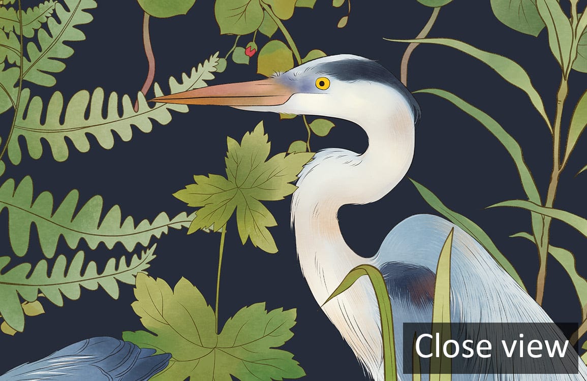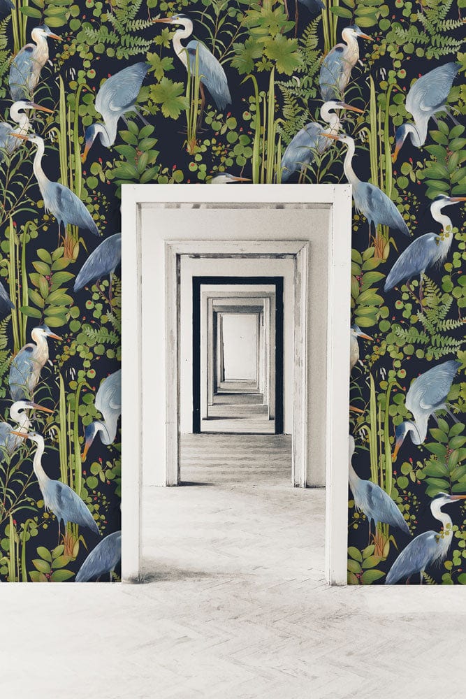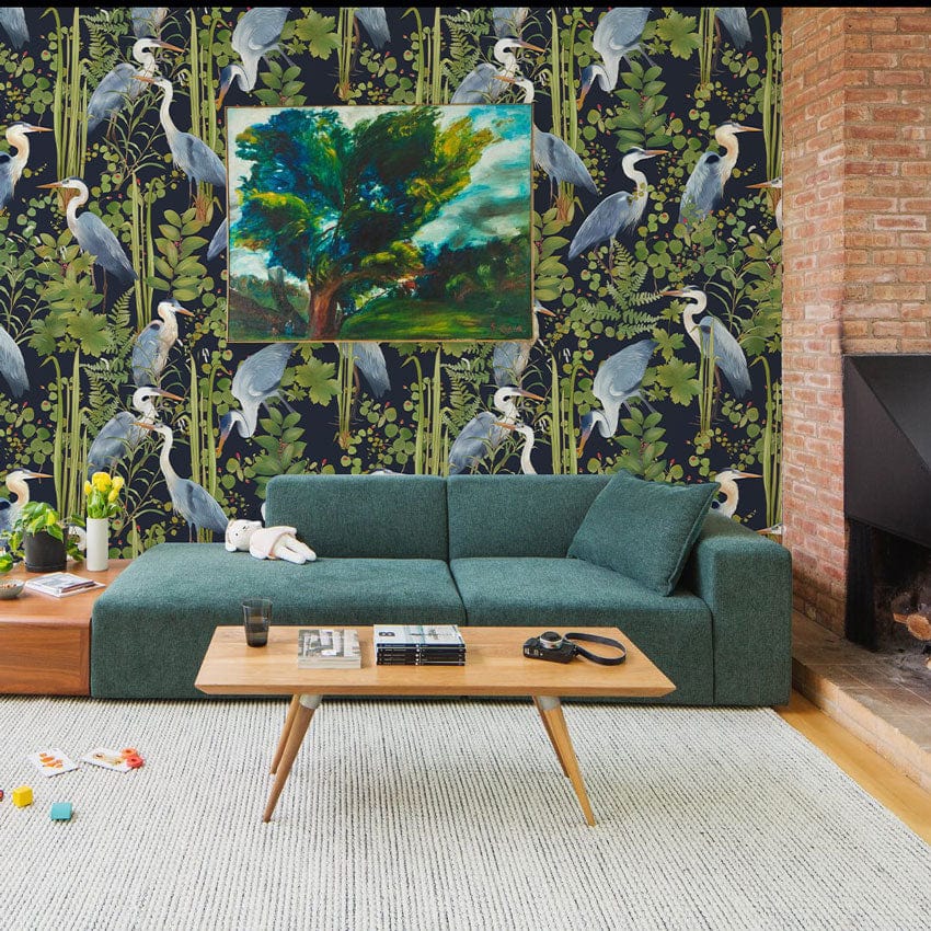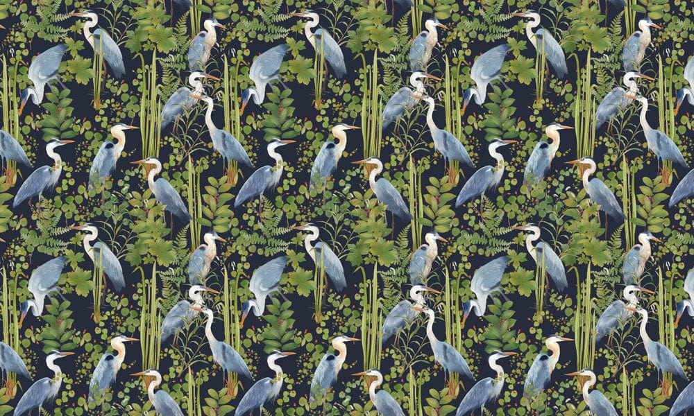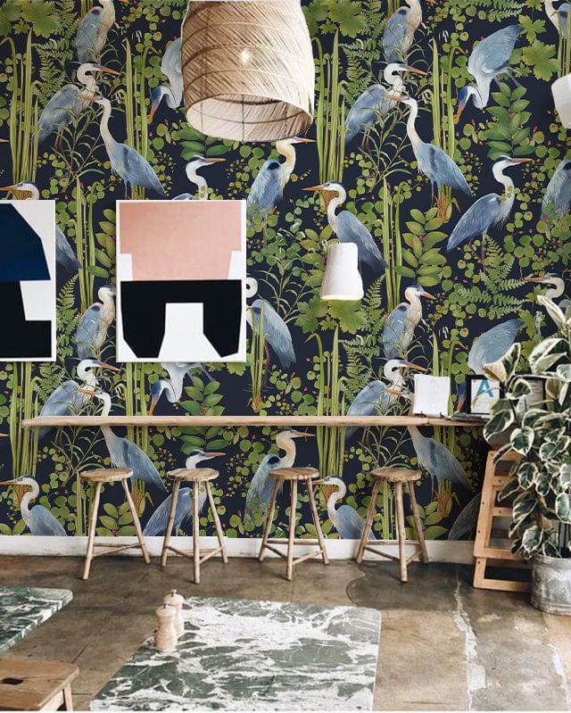 Immerse your space in the exquisite allure of the Jungle Herons Wallpaper Mural II, featuring meticulously illustrated herons amidst lush greenery. This mural intertwines graceful birds with verdant foliage, creating a captivating tableau that offers a timeless elegance, perfectly suited for both modern and classic interiors.