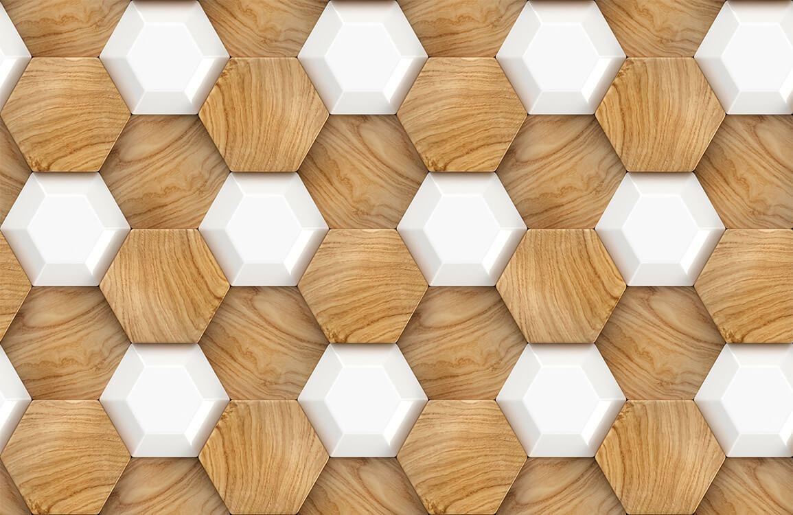 Spice up your living space with this unique wallpaper mural. The hexagon pattern is designed in a combination of wood and plain brick texture in a artful way. The classic brown and white tone give the wall mural a 3D effect in all your bedroom, living room, kitchen, bathroom and hallway. Match it with either your traditional or modern furniture and home decor.