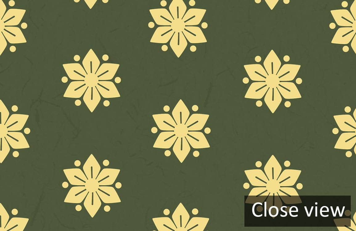 This Hexagonal Flowers Wallpaper Mural presents a sophisticated interplay of geometry and floral motifs, seamlessly merging elegance with artistic flair. Golden blooms arranged in a precise hexagonal pattern create a visual rhythm that captivates and soothes, perfect for spaces seeking a balance between classic charm and modern design.