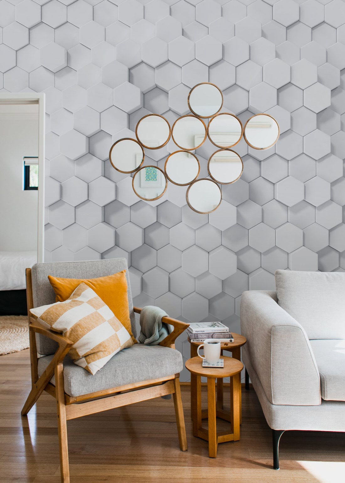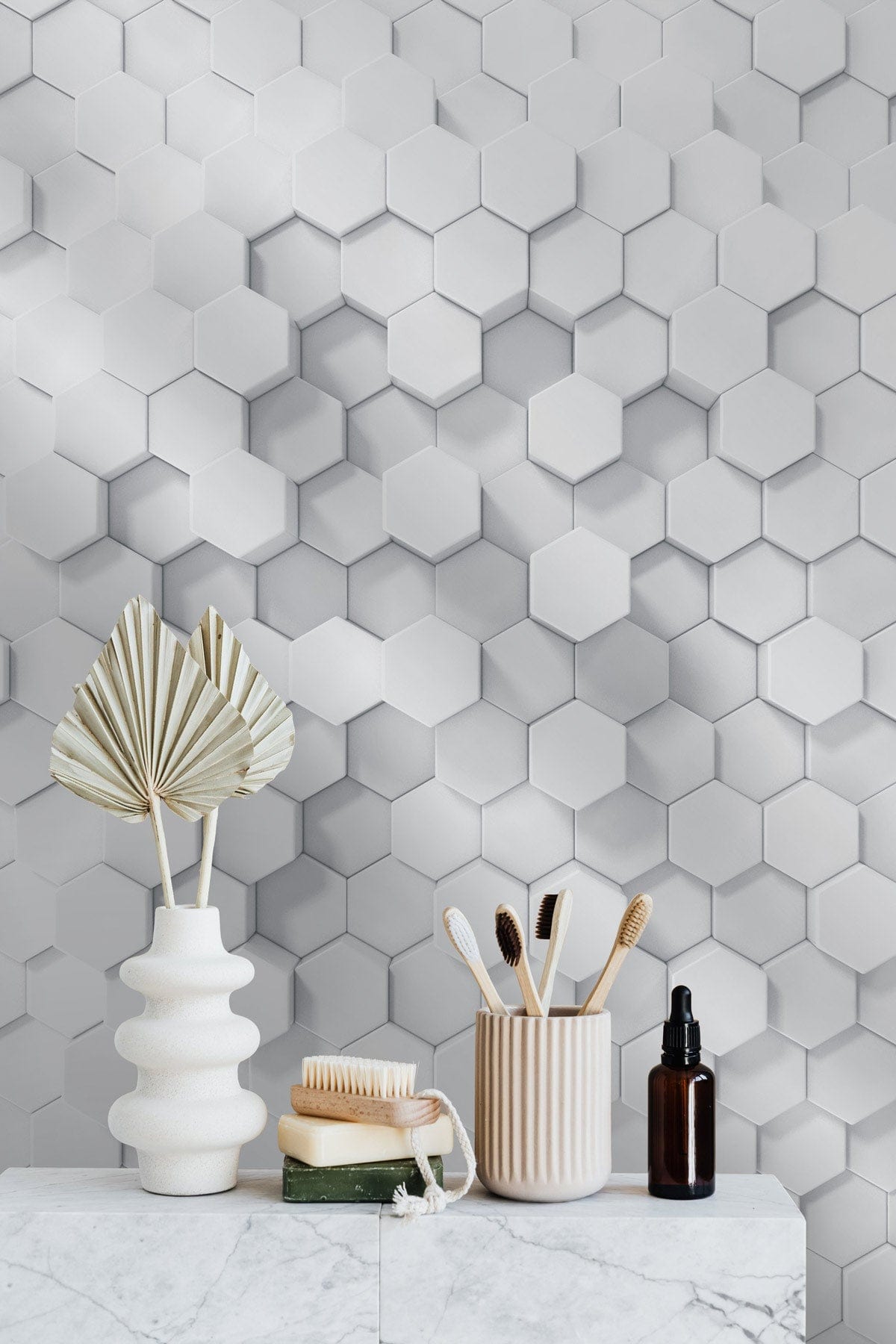Immerse your space in subtle sophistication with the Hexagonal Serenity Mural Wallpaper. Its intricate design features a seamless array of hexagonal patterns that create a gentle, three-dimensional illusion. Delicate shadows play across the textured surface, adding depth and intrigue without overpowering the room. Ideal for both contemporary and classic interiors, this mural effortlessly complements a variety of décors with its understated elegance.