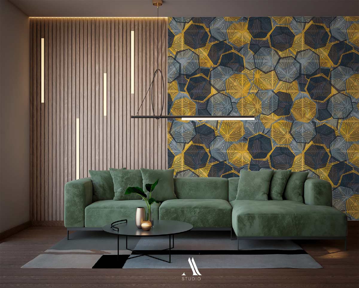 Welcome the unique and stylish wall mural into your space and create a modern home style. This wallpaper is a perfect combination for lovers of geometric pattern and tile texture. The heptagonal honeycomb-shape pattern is combined with subtle floral tile print in a harmonious way. Available in peel & stick and permanent paper types with child-safe inks. Get ready for a stunning interior design!