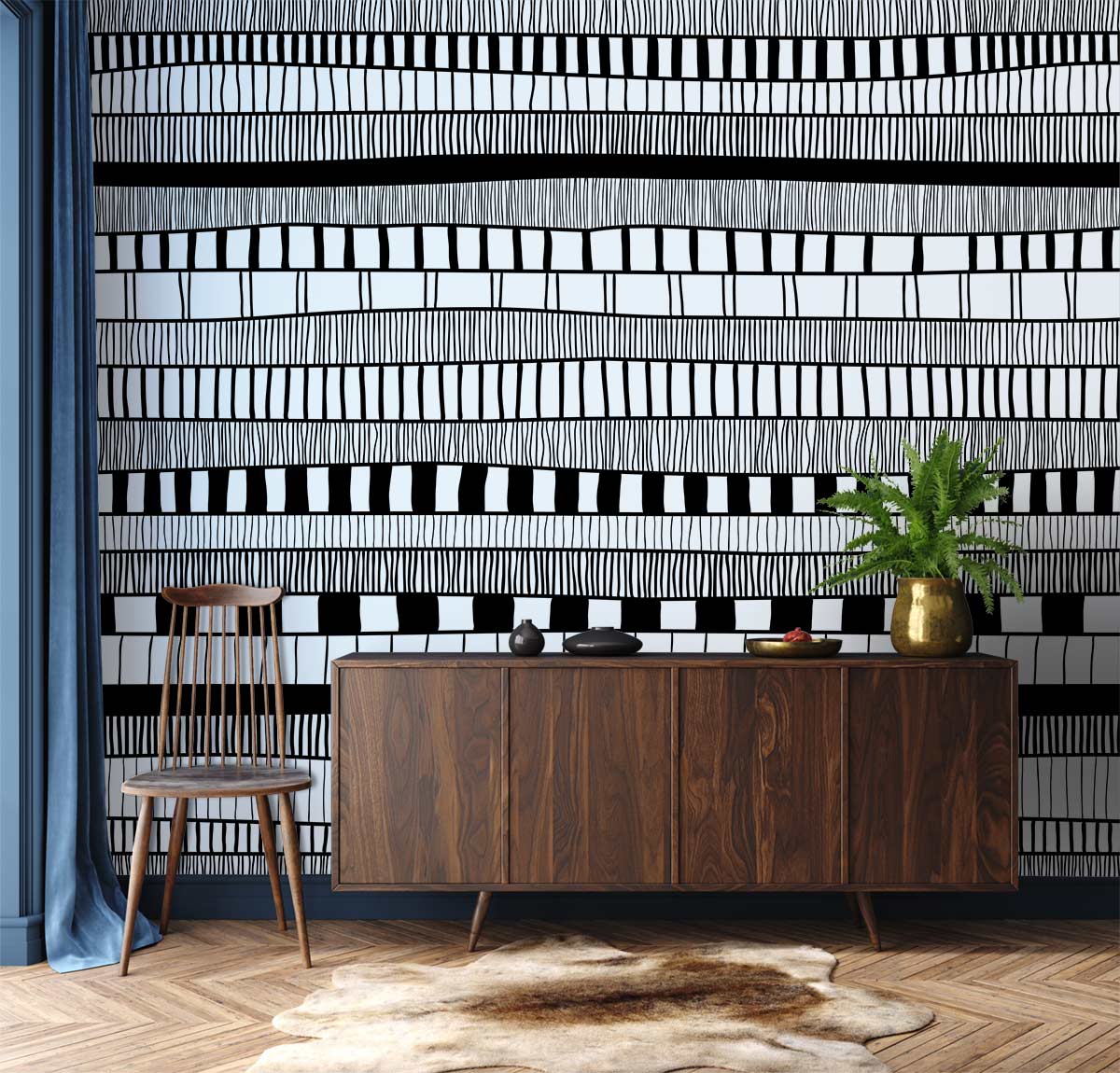 This Horizontal Texture Wallpaper Mural exudes artistic flair with its captivating interplay of lines and geometric patterns. The monochrome palette creates a subtle yet striking backdrop, perfect for infusing any space with a touch of modern sophistication. Its intricate design weaves a tapestry that draws the eye, offering a timeless appeal suitable for both contemporary and classic interiors.