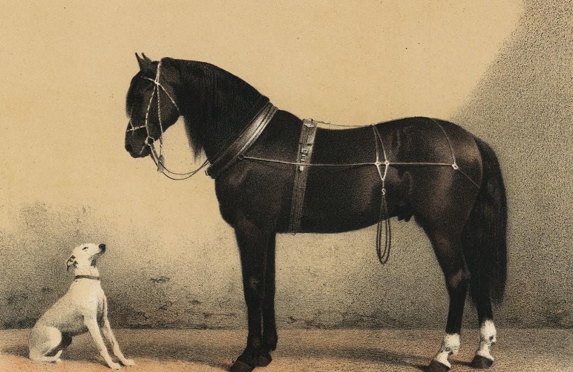 This exquisite Horse and Dog Wallpaper Mural captures the serene companionship between a majestic horse and a loyal dog, set against a warm, textured backdrop. The artwork's subtle shadings and fine details bring a tranquil elegance and timeless grace to any room, making it a versatile addition to both classic and contemporary interiors.