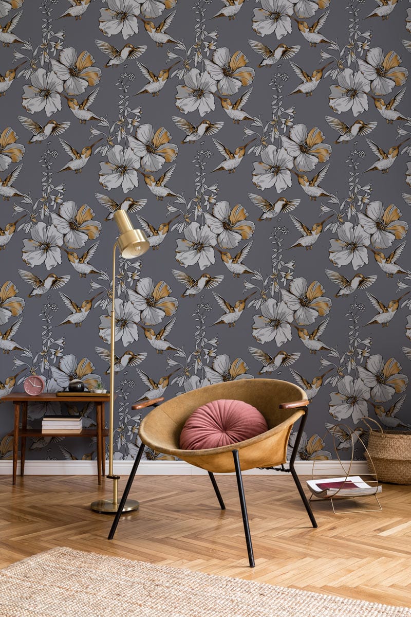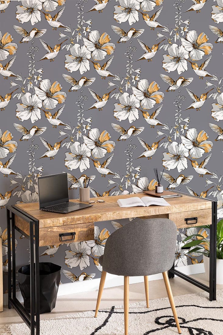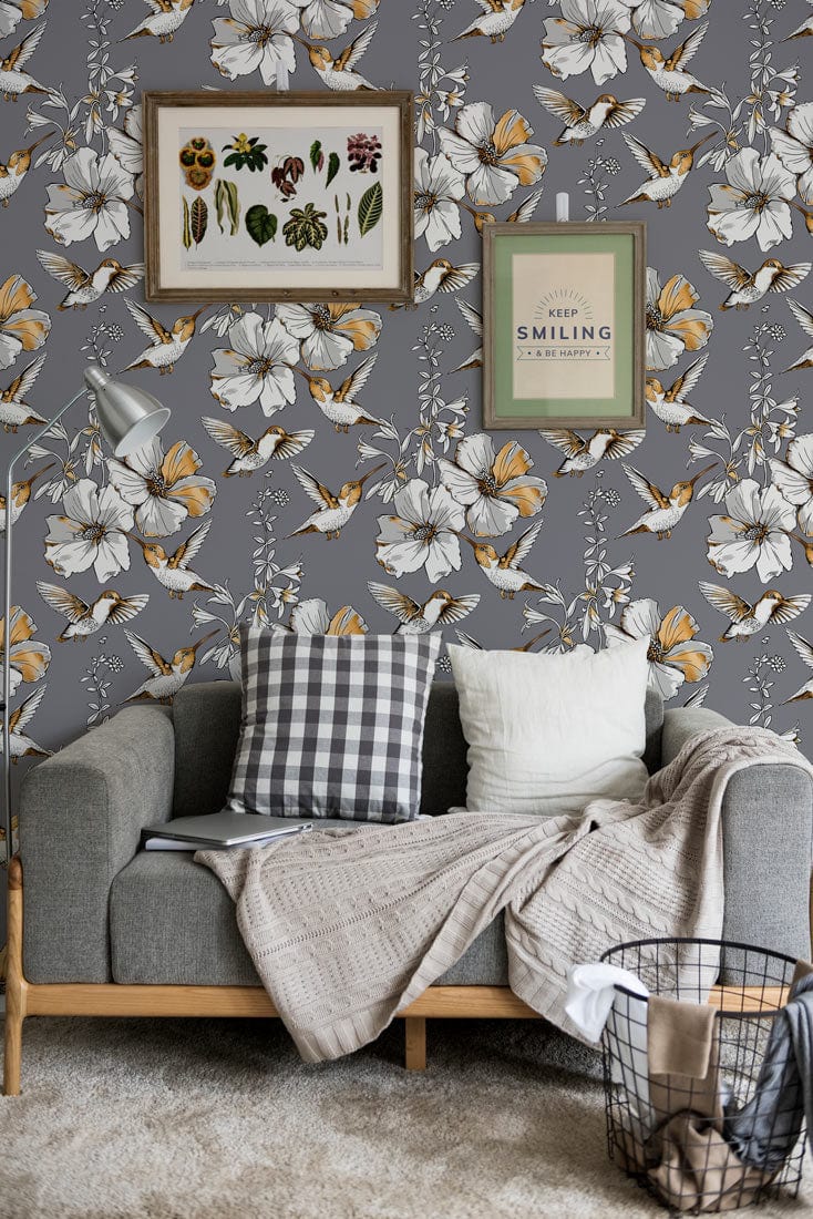 The Hummingbird Harmony Mural Wallpaper exudes elegance with its intricate depiction of delicate hummingbirds amidst cascading florals. Set against a subtle backdrop, the sweeping lines and detailed motifs evoke a sense of graceful tranquility. Ideal for both contemporary and classic interiors, this wallpaper effortlessly complements a variety of spaces, adding a touch of nature's refined artistry.