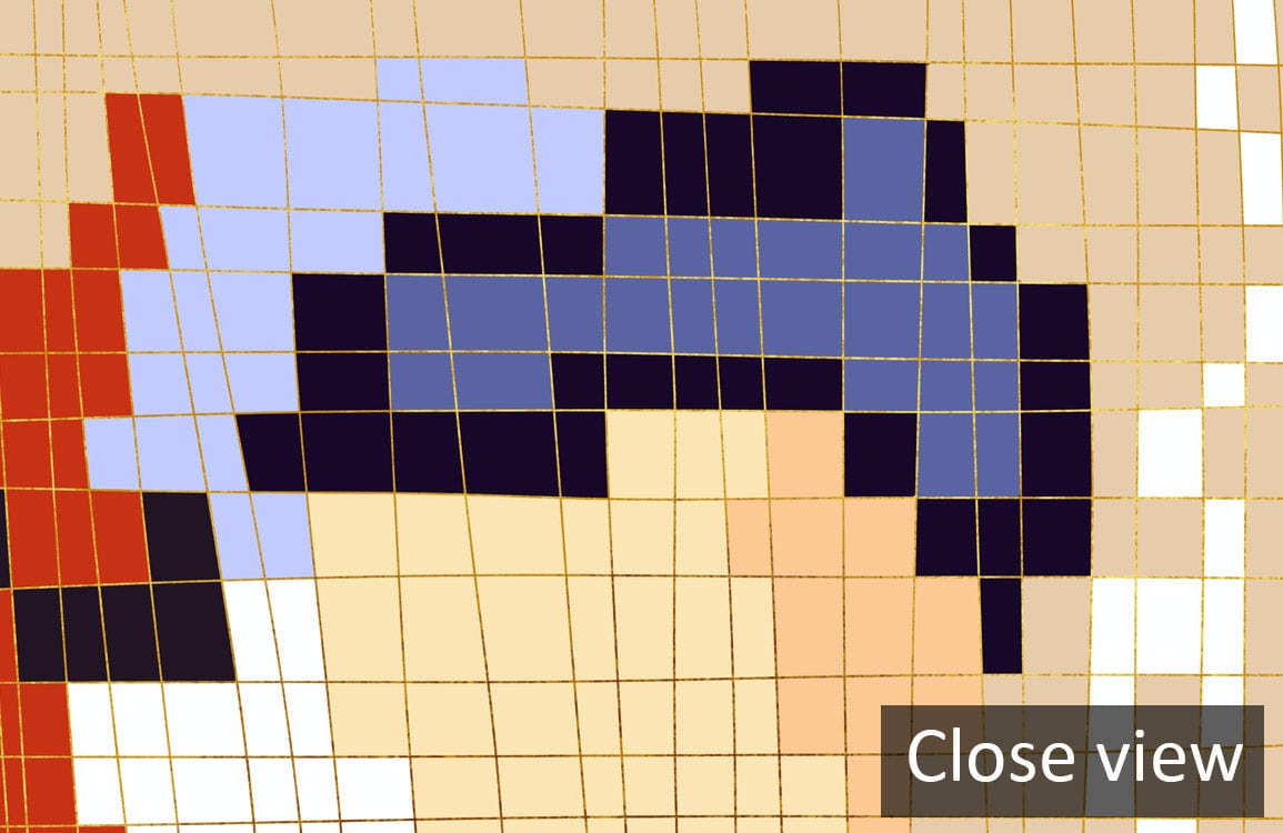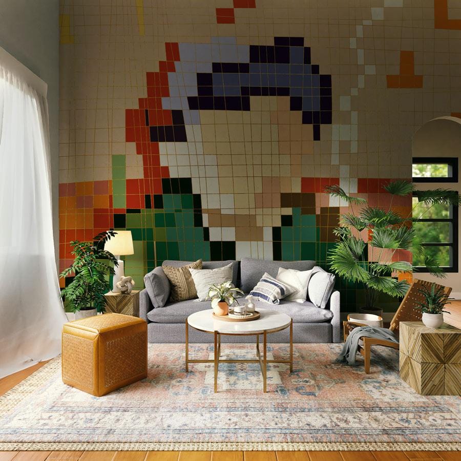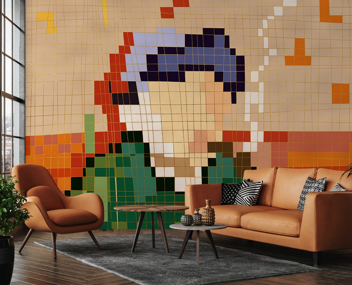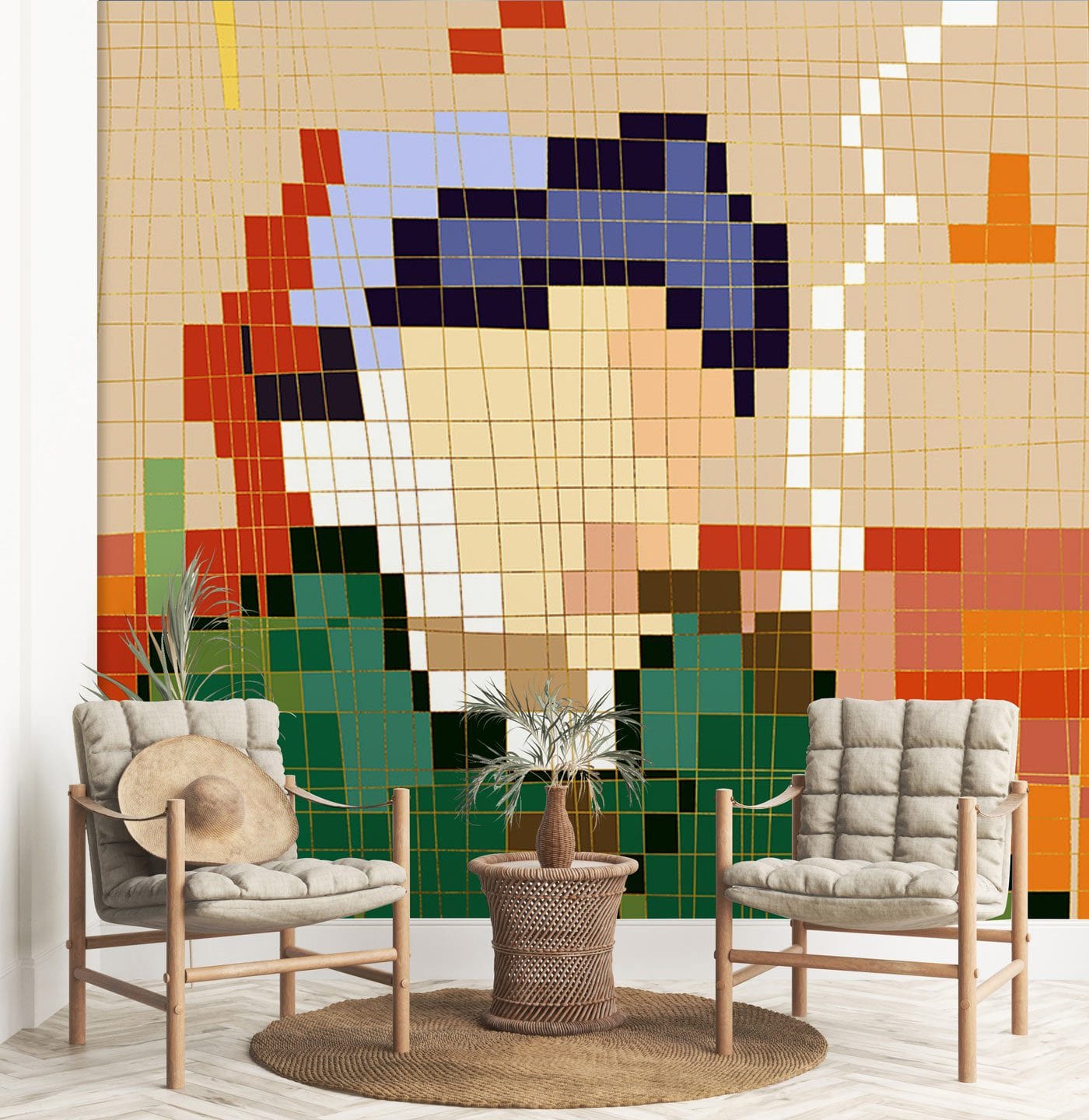 Create an eye-catching space with this Van Gogh portrait wallpaper mural. The abstract illustration of Famous Van Gogh portrait perfectly blend with geometric figures and mosaic textures that add a more contemporary feeling to the art work. Ideal wall mural to pair with your modern furniture and home decors.
