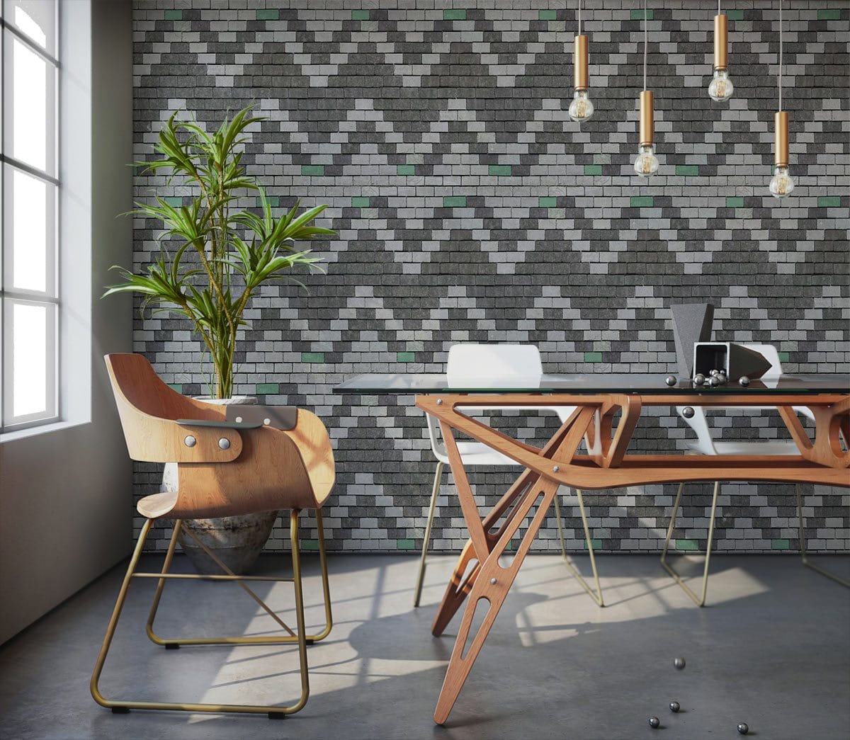 Experience the artistic allure of this Industrial Brick Wallpaper Mural, featuring a zigzag design that effortlessly marries geometric precision with urban charm. Its intricate pattern and tactile appearance create a captivating texture that brings a dynamic and sophisticated edge to any setting. Perfectly suited for infusing an eclectic yet timeless character into your interiors, this mural offers a bold statement while maintaining an elegant grace.