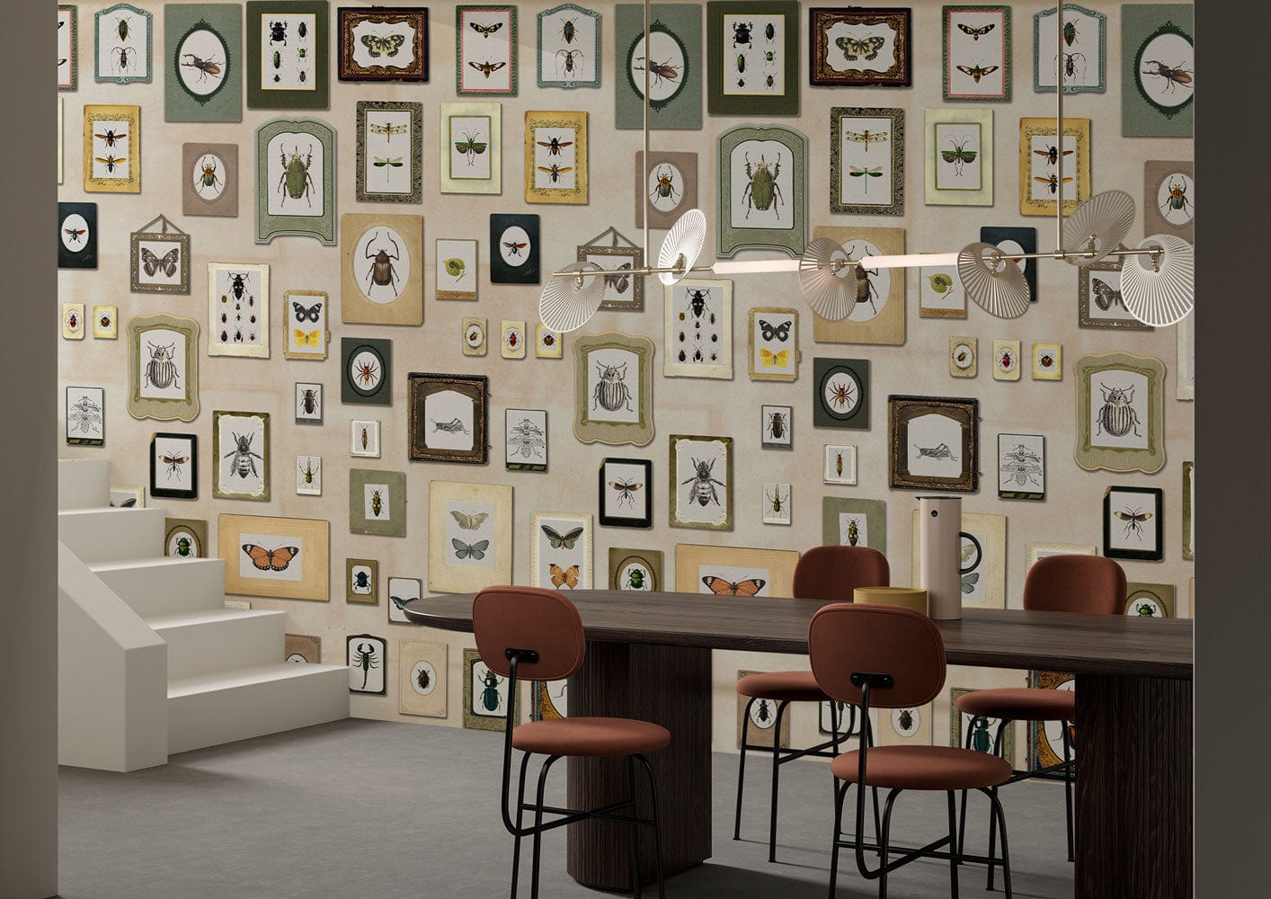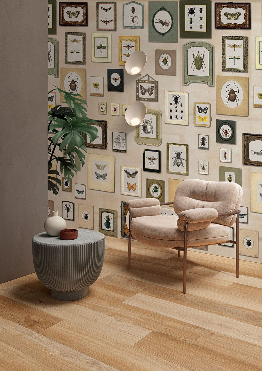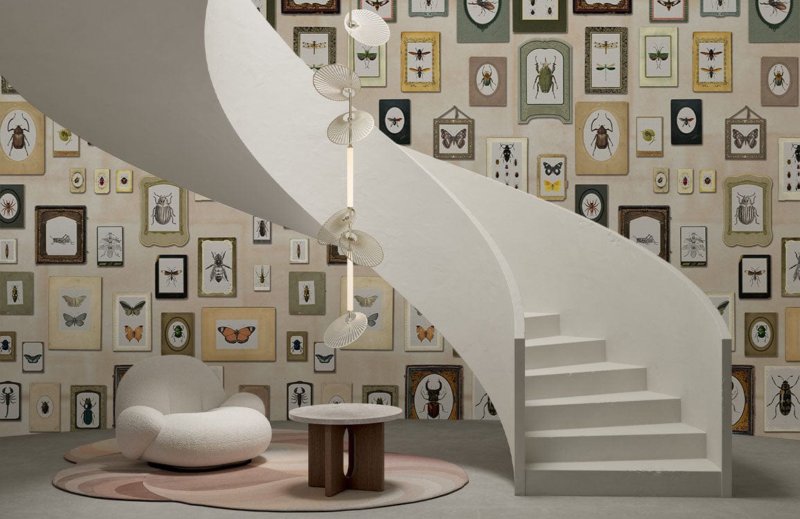 Invite nature's intricate artistry into your home with the Insect Specimen Wallpaper Mural. This exquisite design showcases a curated collection of detailed insect illustrations, elegantly framed in varying styles and sizes. The meticulous rendering of each specimen against a soft, muted backdrop creates a refined yet lively tableau. Ideal for creating a feature wall in both contemporary and traditional settings, it brings an organic sophistication to any space.