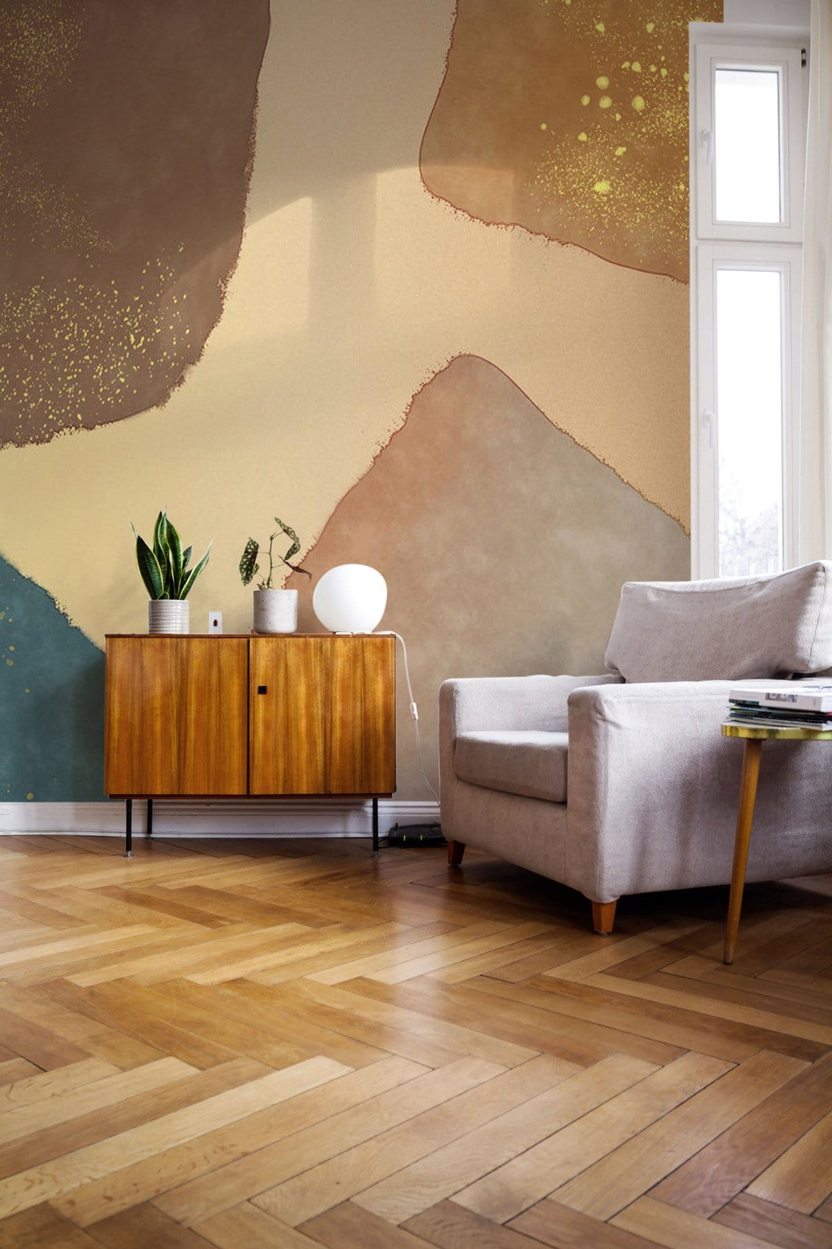 Discover a captivating mural that intertwines organic forms with the elegance of understated colours. This design showcases flowing, irregular shapes layered in harmonious tones, providing a sophisticated backdrop to a variety of interiors. Effortlessly blending warmth and texture, it's a perfect choice for those seeking a timeless aesthetic that adds depth and character to any room.