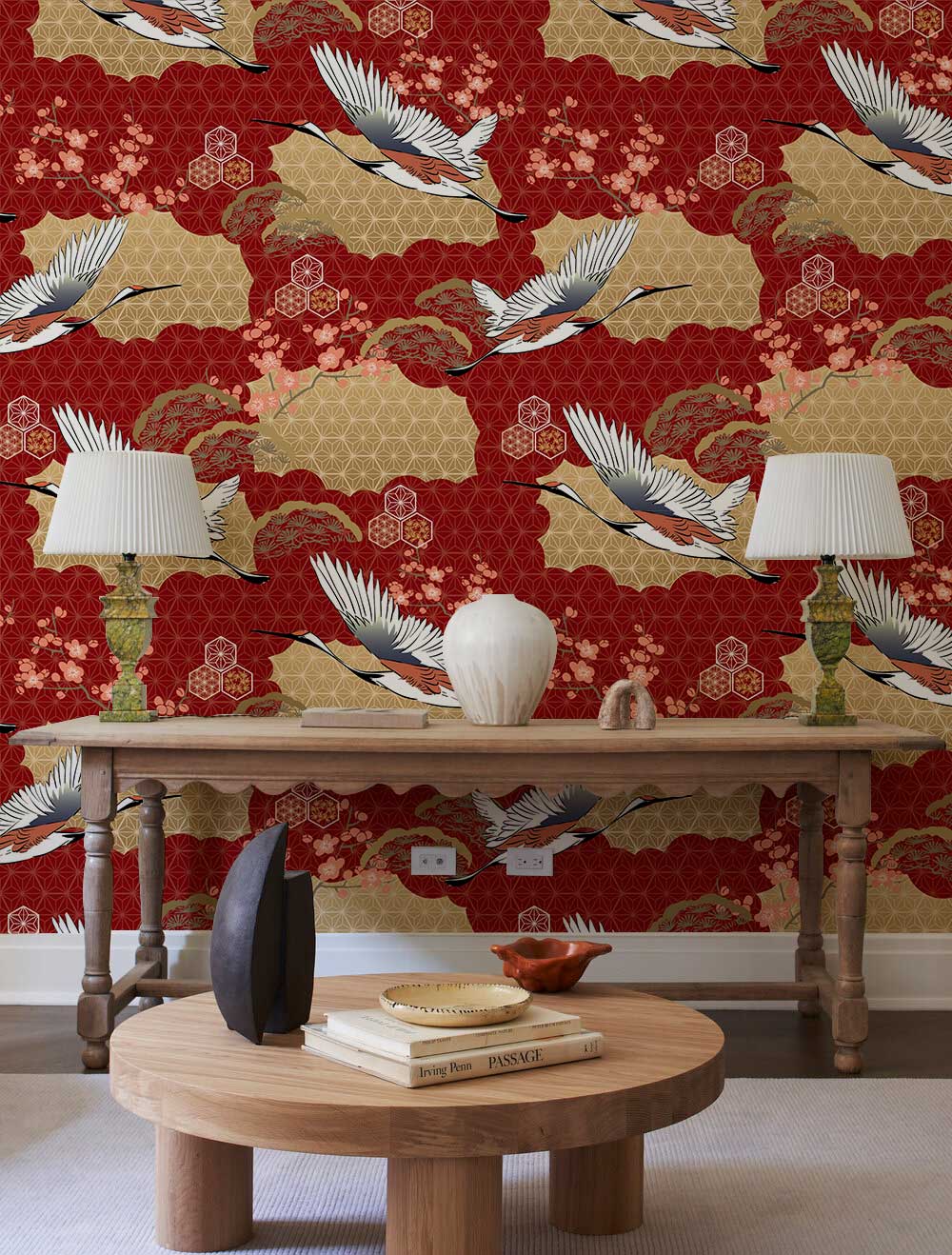 Welcome a subtle and beautiful vibe into your space. You can choose this wallpaper mural, Japanese crane. This wallpaper mural is surprisingly delicate and fascinating. Atop the red colour background, the beautiful cranes are spreading their wings to fly freely. This marvelous wallpaper mural can be installed in a restaurant, dining room and hallway. And your guests will be left in awe at its elegance.