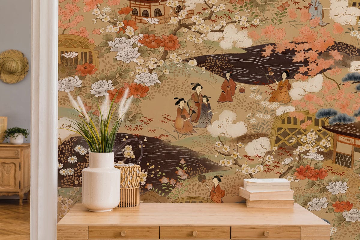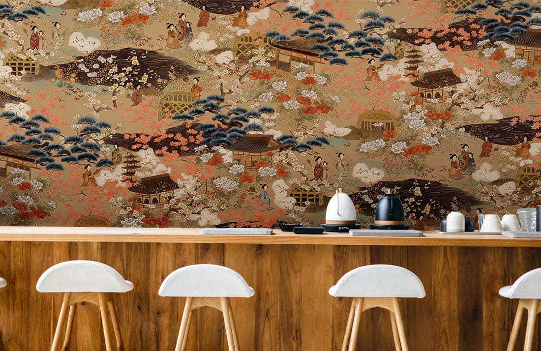 Immerse your space in the timeless artistry of this Vintage Japanese Style Wallpaper Mural. With intricate depictions of serene landscapes and elegant figures, this mural is a luxurious celebration of classic Japanese aesthetics. The delicate interplay of colours and textures creates a harmonious ambience, making it a refined choice for various interiors seeking sophistication and cultural depth.