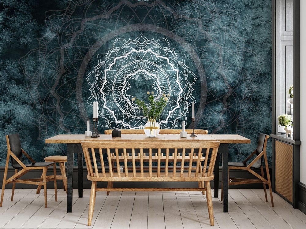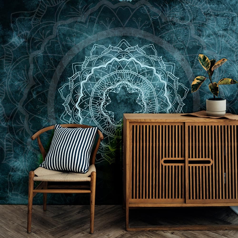 A mandala is a spiritual and ritual symbol in Hindu and Buddhist traditions, representing the universe. This Jasper Mandala Patterns Wallpaper Mural will bring warmth and tranquility to any space, reminiscent of the Hindu traditions. The jasper blue shade of the geometric design is refreshing and calming, perfect for creating a peaceful ambiance in your home. Take a dose of vivid colour to your walls with this premium-designed wallpaper today.