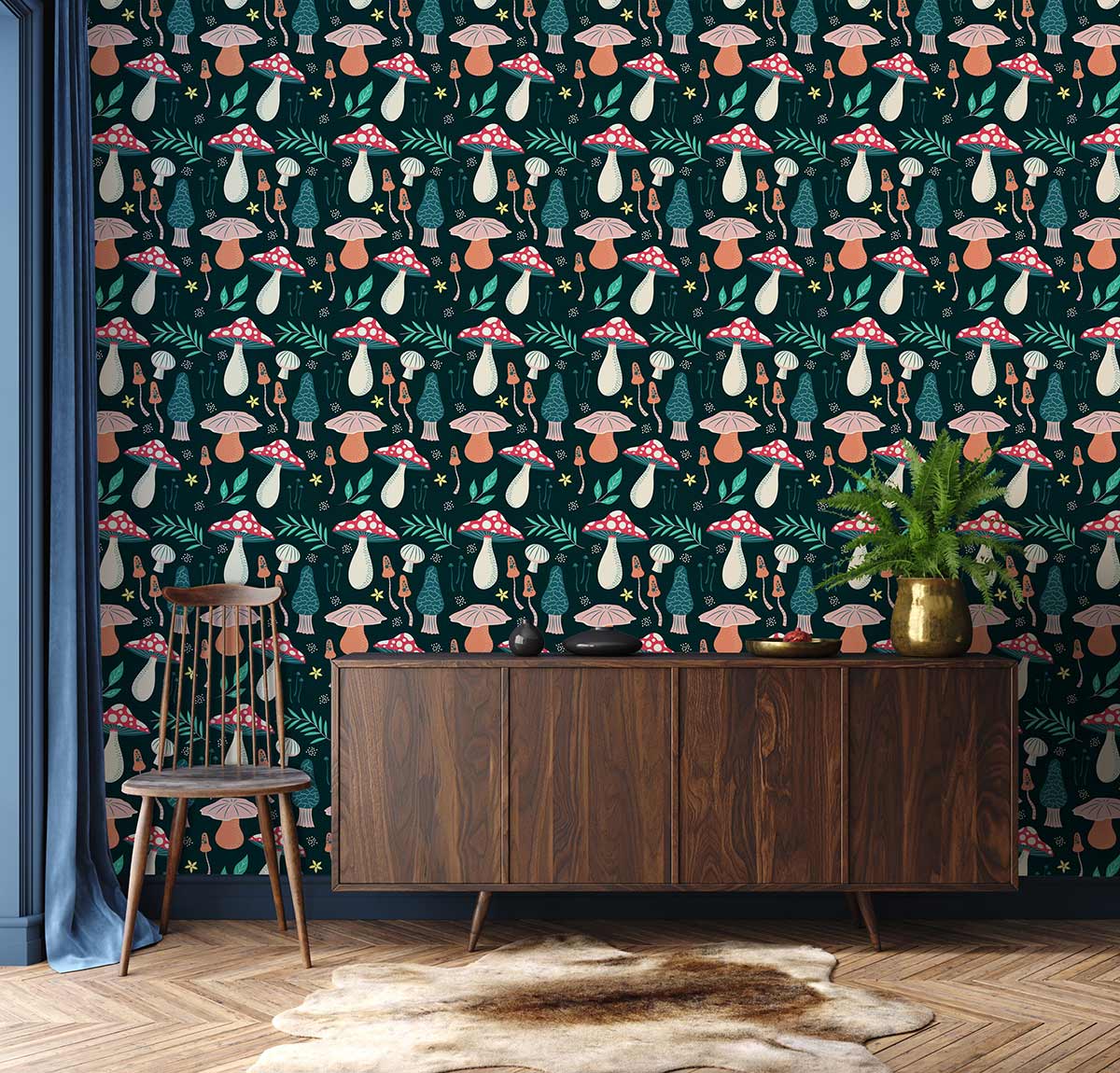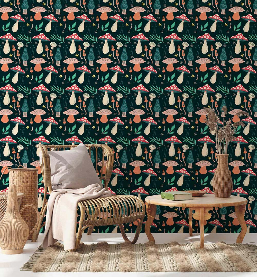The Jasper Mushrooms Wallpaper Mural is a fun and vibrant way to add a pop of colour and style to any room. Featuring a whimsical design, this mushroom mural will surely become the center of attention in your child's bedroom or nursery. These beautiful mushrooms will add a touch of nature to your walls and instantly transport you to your favorite forest glade. The unique piece will bring the magnificence of nature into your home and can be easily removed without damaging walls when you're ready for a change.