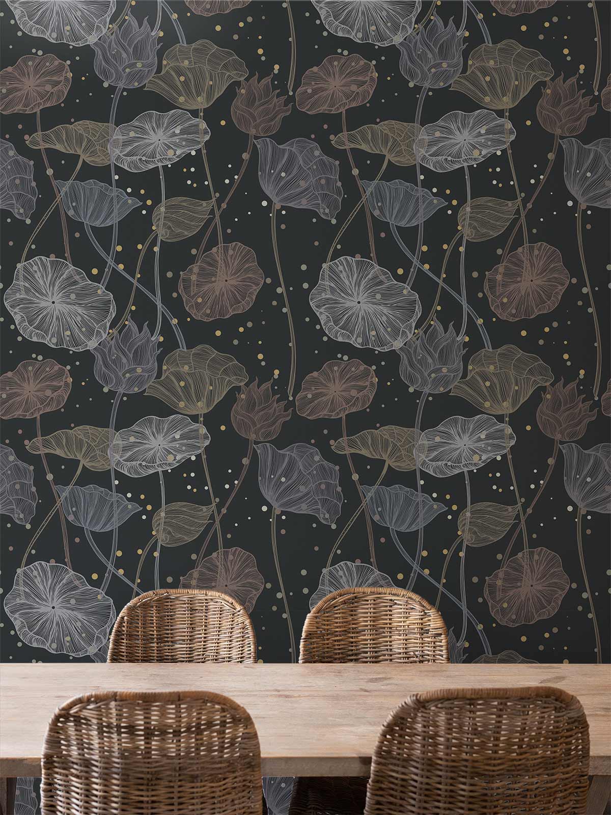 Take your nautical stuff obsession to the next level with the Jellyfish Flower Wallpaper Mural. Featuring an underwater scene with jellyfish flowers and coral dots against a black background, this sea wallpaper lets you imagine you're looking at the deep water from above! The simple and subtle colours depict a sea of exotic blooming jellyfish that will leave any room feeling lighthearted and fresh. This neutral and calming colour palette is perfect for any room in your home - even kids' rooms.