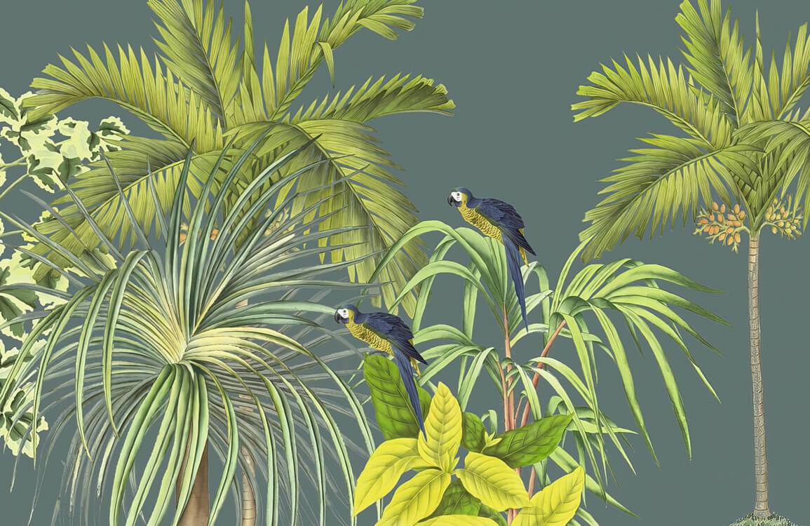 Immerse your space in the captivating allure of the Jungle & Birds Wallpaper Mural, where the lush depiction of tropical palms and vibrantly coloured birds whispers of faraway paradises. This mural effortlessly bridges the delicate beauty of nature with elegance, making it an exquisite addition to both classic and modern interiors. Its intricate detailing and harmonious colours impart a serene yet sophisticated ambience that complements a variety of settings.