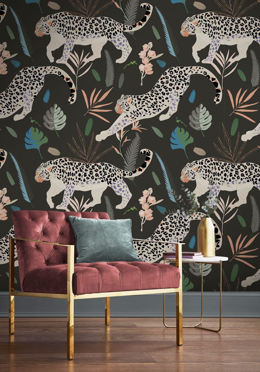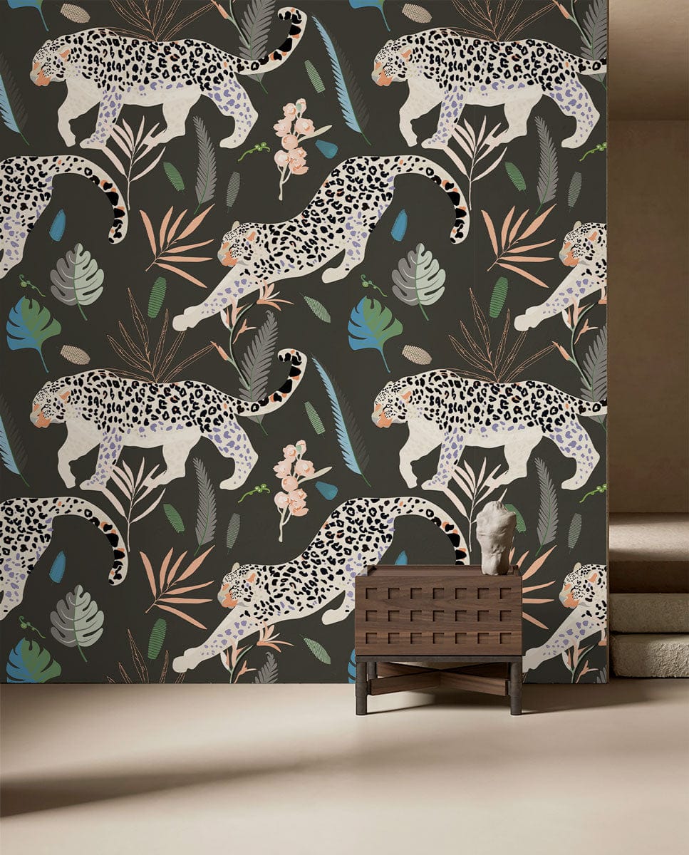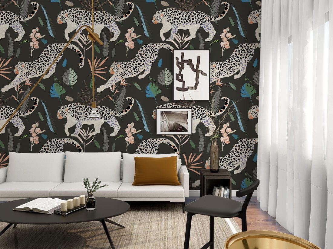 The Jungle Leopard Charm Mural Wallpaper artfully captures the majestic elegance of leopards amidst lush foliage. With its intricate detailing and bold presence, this wallpaper creates a dynamic yet sophisticated backdrop. Perfect for spaces that seek a touch of the wild blended with timeless elegance.