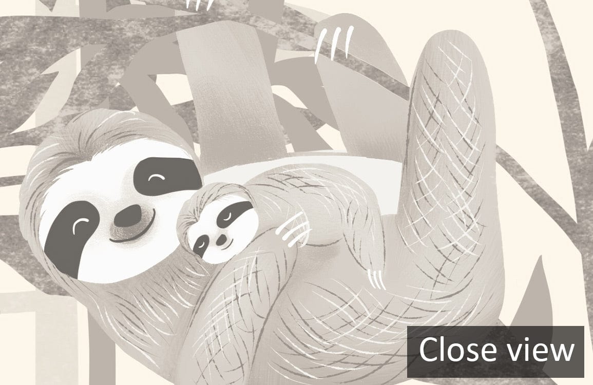 Make your children smile with our beautiful sloth wallpaper mural. This Wallpaper is designed in repeat patterns of cute sloth hanging and swinging on the trees in jungle, which will surely steal your heart. Bring your home some freshness and natural touch with this wall mural. It will look great in your living room, bedroom, kid's room and baby nursery.