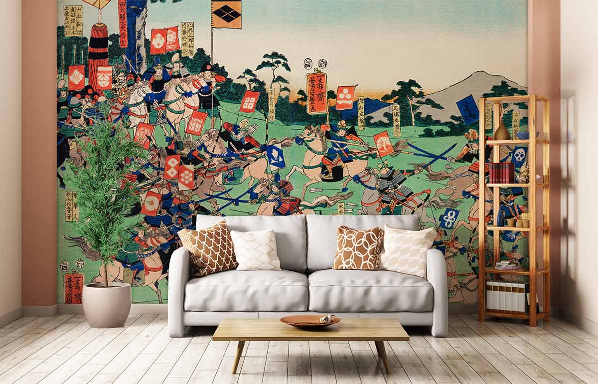 Battles of Kawanakajima were a series of battles in the sengoku period in Japan between different parties from 1553 to 1564. These battels of Kawanakajima became one of most cherished tales in the Japanese military history.so by putting this magnificent piece of history into your place will make it completely chic, victorious and attractive. This multi-coloured mural wallpaper will take your home into a new level of modernity mixed with heroic theme.