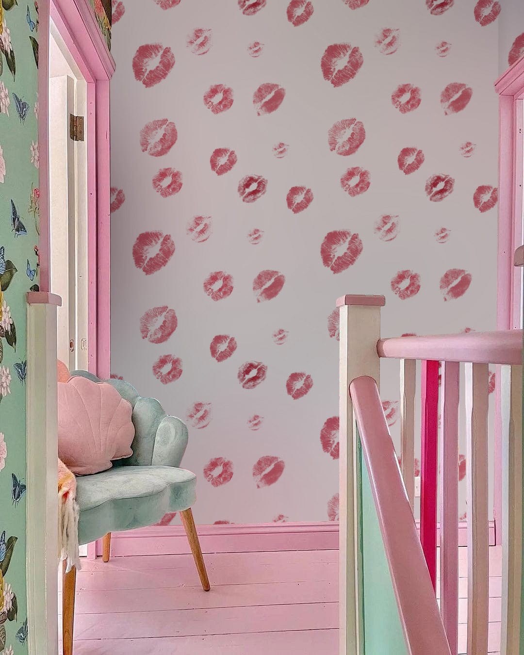 Kiss Me Softly Mural Wallpaper captivates with its artistic splashes of soft pink lips scattered across a pristine white background. This design evokes a sense of playful elegance and romantic charm, seamlessly blending into both contemporary and classic interiors. The tactile textures and subtle patterns create a soothing ambience, perfect for infusing spaces with a touch of whimsy and grace.
