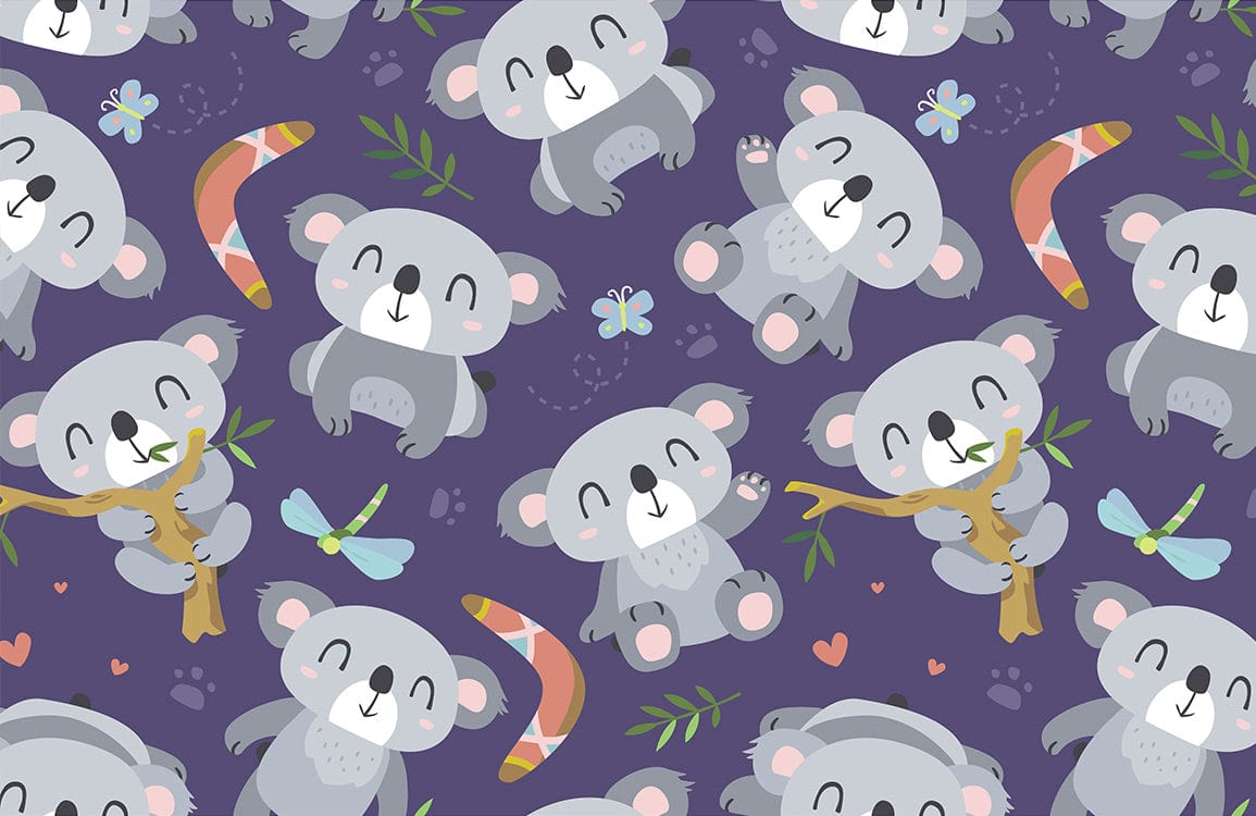 Your children are going to love this cute Koala happy activities pattern wallpaper mural! This adorable cartoon Koalas print wall mural purple colour background is suitable for all kid鈥檚 room and baby nursery, especially for girls and newborns. Place these happy koalas wall mural to your wall and enjoy the happiness and joy it brings to you and your children.