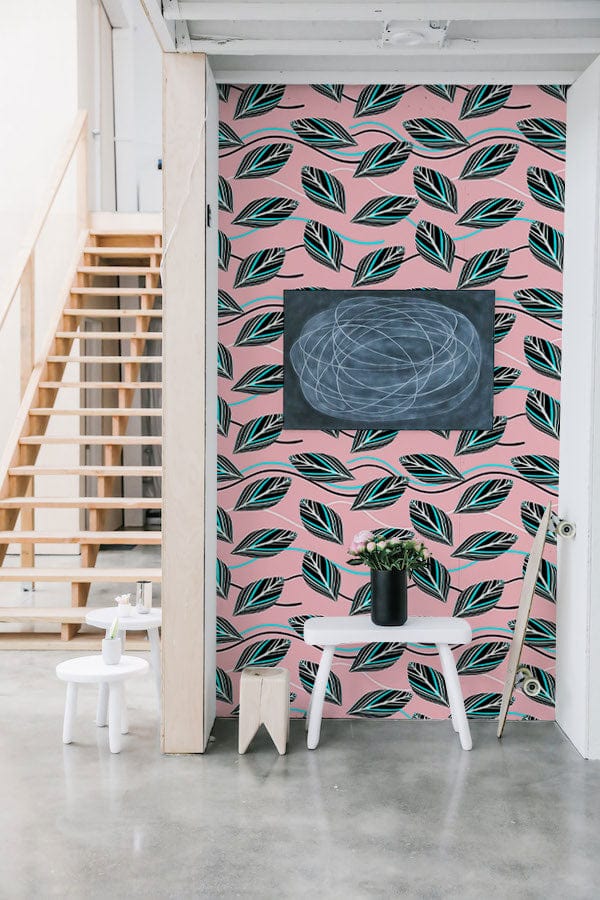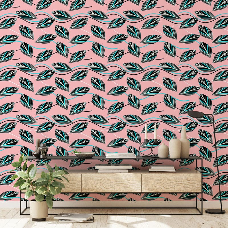 Embrace a sense of timeless elegance with the Leaves on Pink Wallpaper Mural. Its captivating pattern of dark green foliage set against a soft pink backdrop creates a serene yet striking visual experience. Each leaf, meticulously designed, captures an artistic essence that breathes life and sophistication into any room, making it a versatile choice for both classic and contemporary interiors.