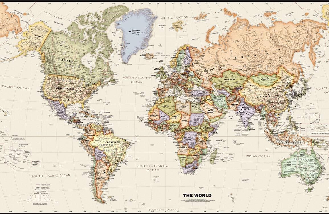 Know this world from A to Z with this custom-made map wallpaper mural. This on-trend map of the world is a fantastic background for your rooms. All of the countries and regions have been clearly detailed in this map. Suitable for any places in your home office, bedroom and hallway.
