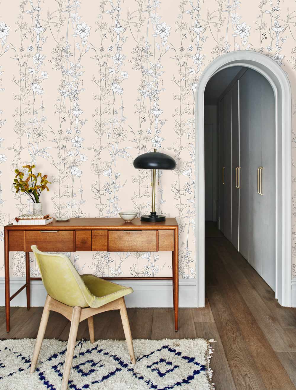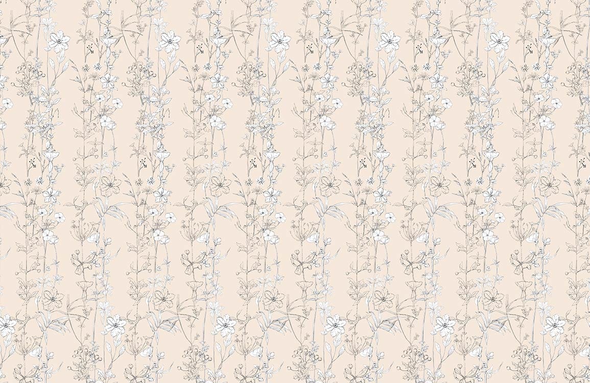 Introducing a serene tapestry of delicate line-drawn flora, this wallpaper mural artfully captures the essence of nature with its intricate botanical elegance. Subtle outlines against a soothing backdrop bring a sense of refined tranquillity to any space, making it an exquisite choice for both modern and classic interiors.
