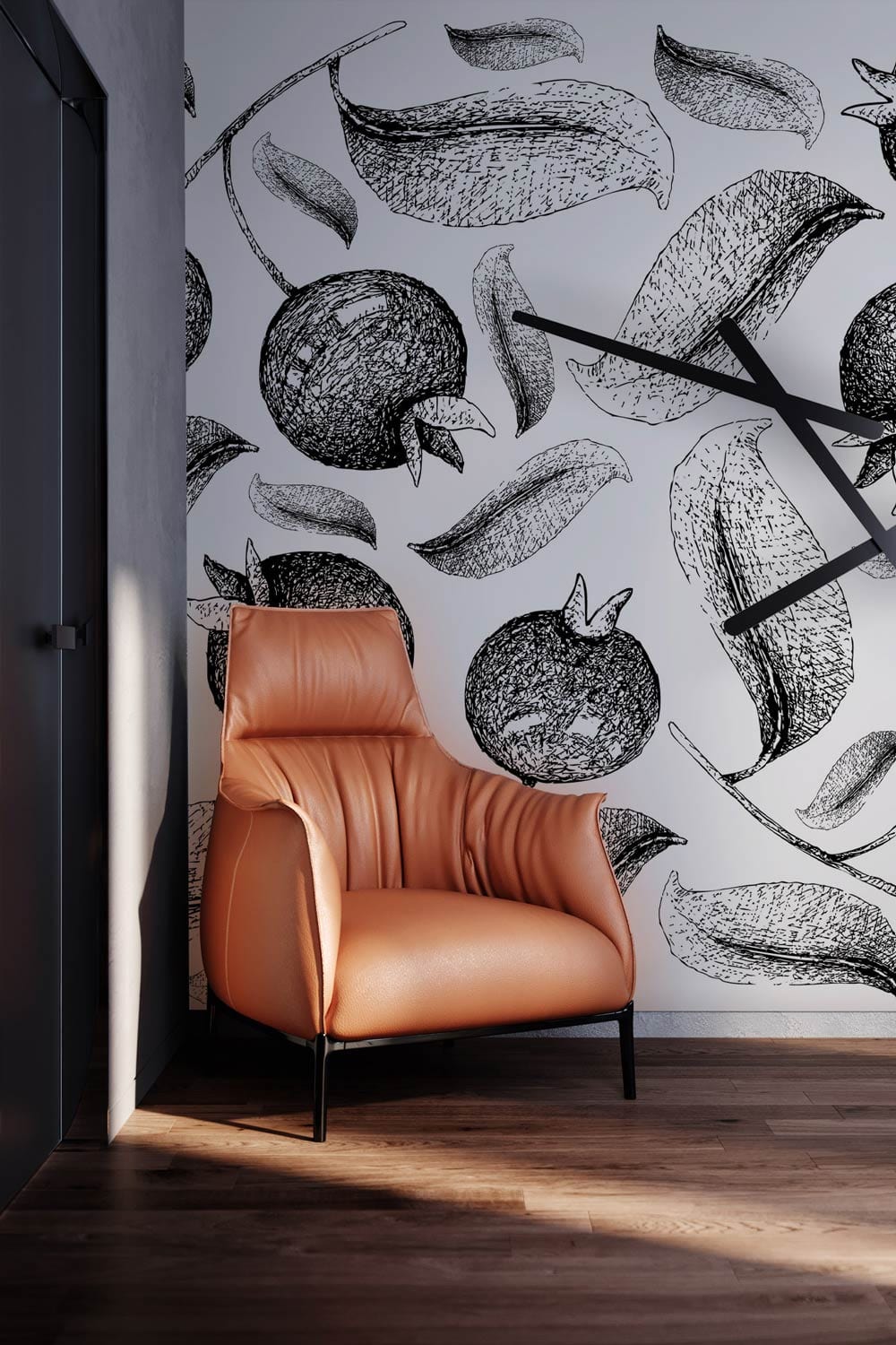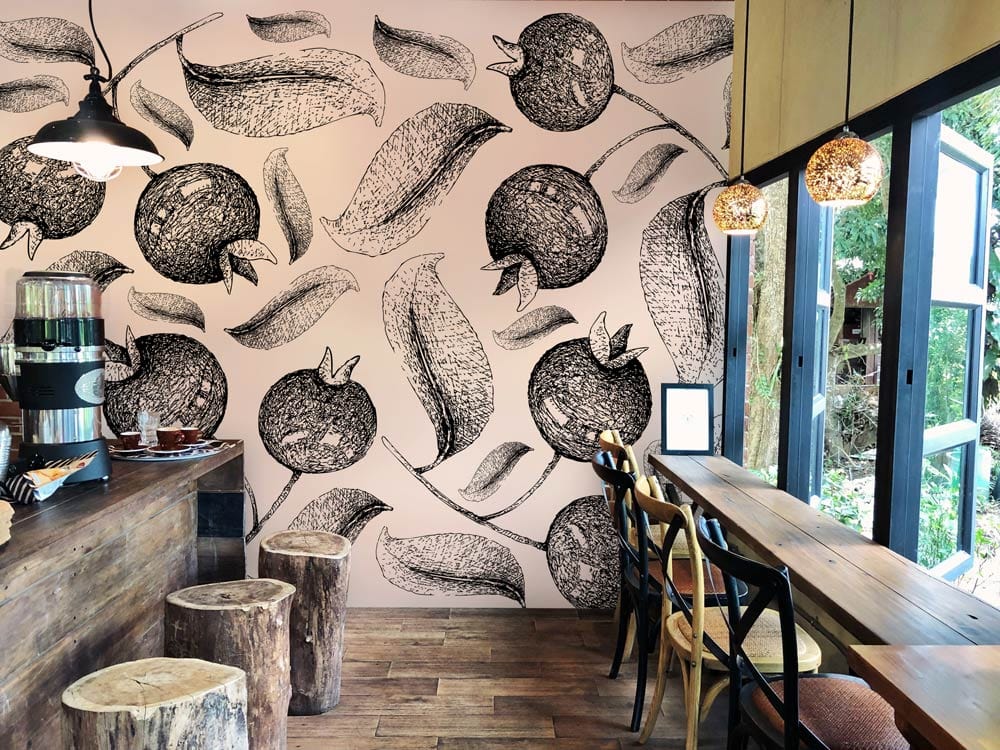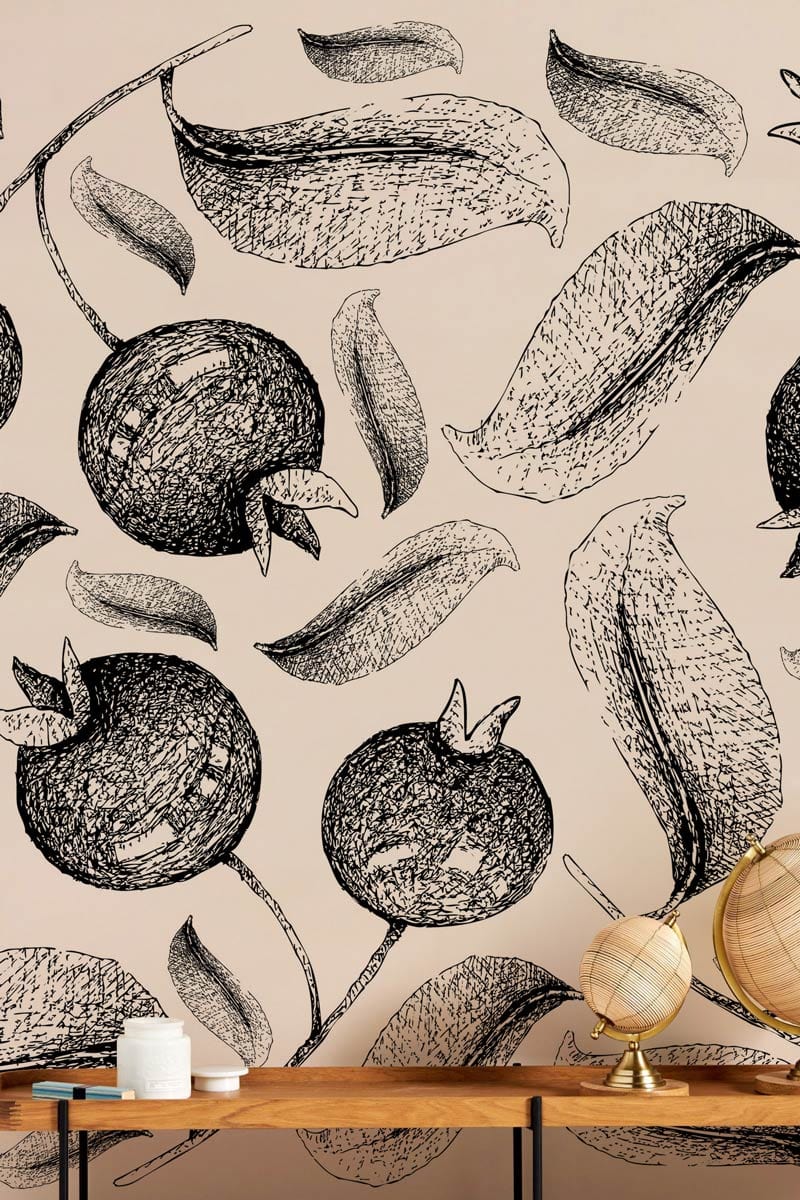 Rock your walls with the Linedrawn Blueberries Wallpaper Mural. A sweet sketch of blueberries and leaves in shades of black and white, this beautiful hand-crafted mural takes inspiration from a field of this fruit and the beautiful colours that grow in picturesque surroundings. Blueberries are in a perfect size, and their colour is in tone with the background of this mural to create a natural impression. The realistic look makes a great accent piece or can be used as a focal point in any room in your home.