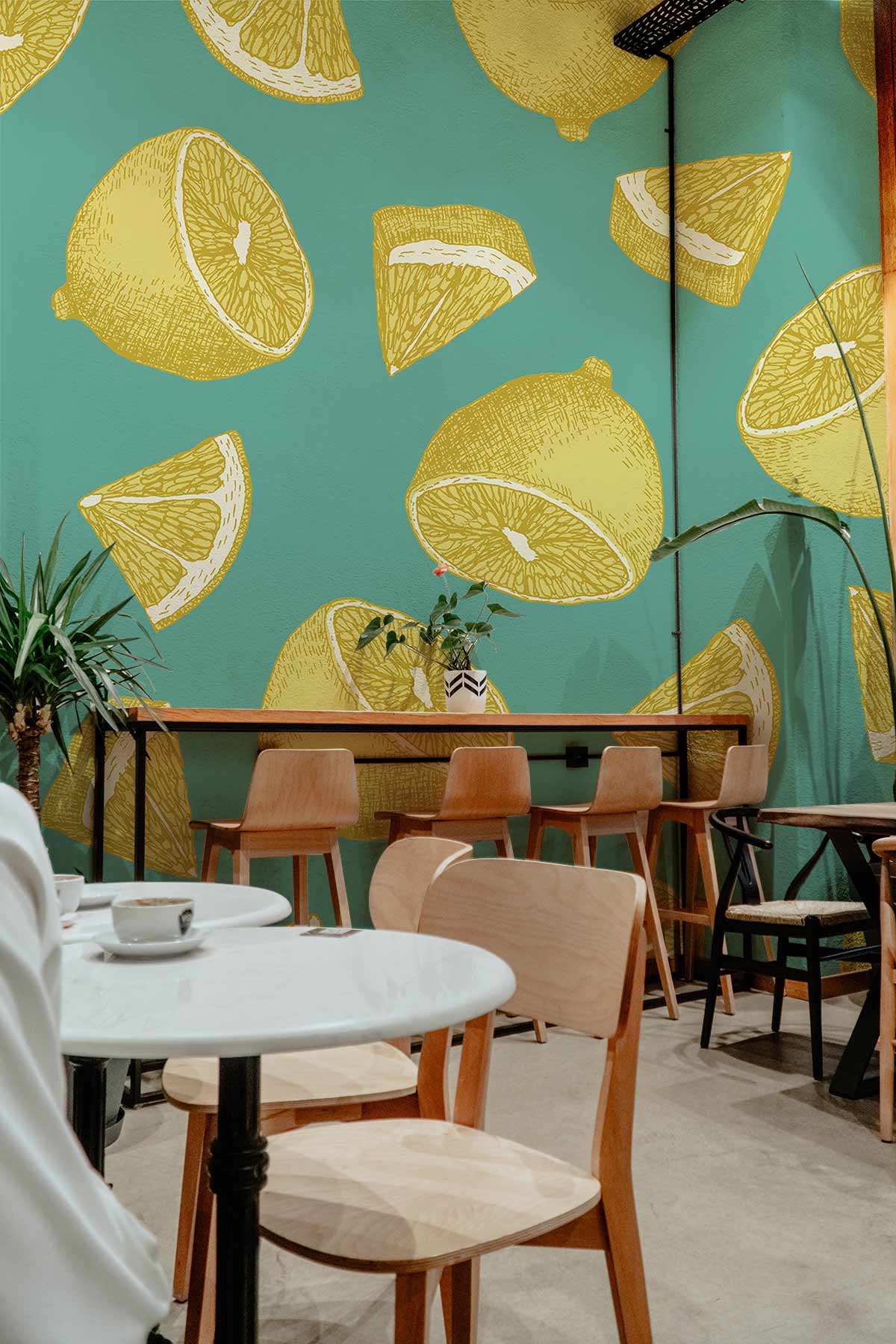 The artist in you will be awakened when they look at this Linedrawn Lemons Mural Wallpaper. An all-over pattern of organic lemon slices paired with a stunning blue-green background, this whimsical wallpaper is ready for you to transform your walls and bring some sunshine into your home. Perfect for kids'聽bedrooms and playrooms, this vivid design is an ultimate choice for modern interiors and gives your home a light, refreshing feeling.