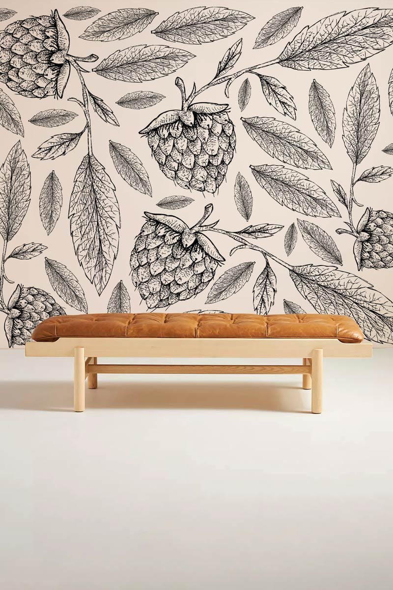The Linedrawn Raspberry Wallpaper Mural effortlessly captures a blend of art and nature with its intricately illustrated raspberries and leaves. The monochrome palette enhances the delicate linework, offering a sophisticated touch that seamlessly fits into both contemporary and classical settings. Its timeless decor composition exudes an elegant charm, making it ideal for creating a serene yet stylish ambience.