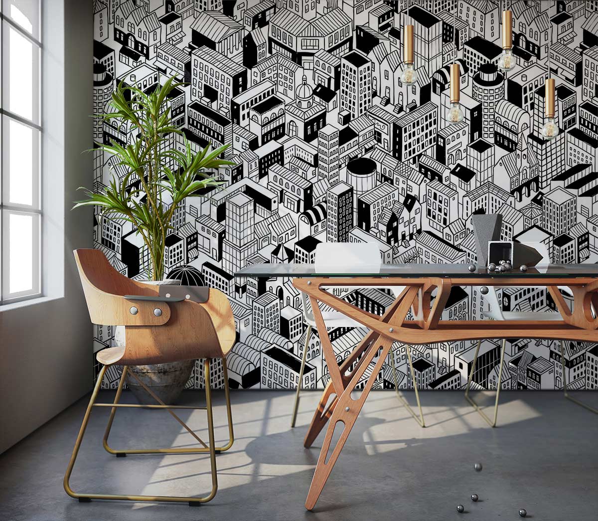 Immerse yourself in a labyrinth of architectural beauty with the Lines-constructed City Wallpaper Mural. Its intricate detailing captures a bustling urban panorama, where geometric precision meets creative artistry. This monochrome tapestry effortlessly weaves through deco aesthetics, inviting a sense of depth and movement. Perfectly suited for a sophisticated setting, it offers a versatile charm that complements both traditional and modern interiors.