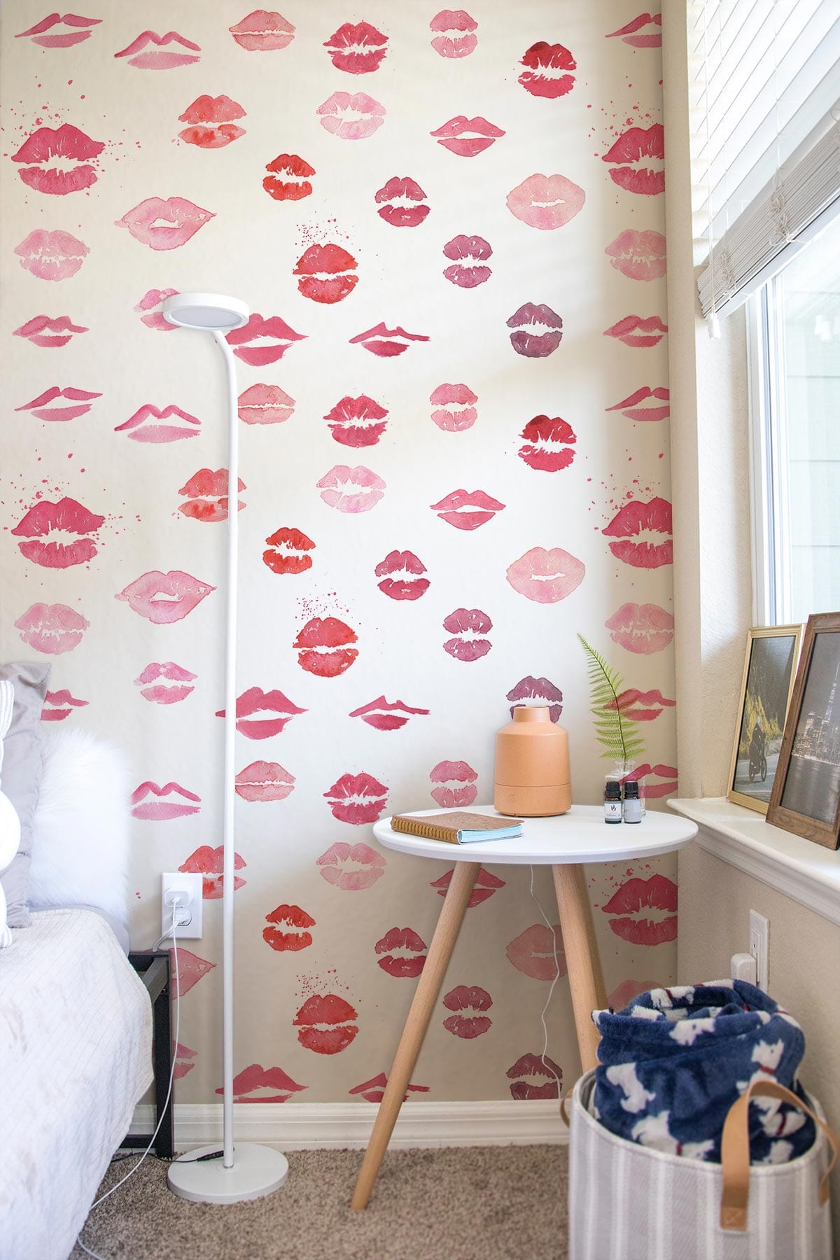 Give your walls a little something to kiss and make them feel all fuzzy inside with this Lips Wallpaper Mural. This mural is a dynamic and fun way to add colour and style to your space. Complete with kiss mark patterns, it is sure to make any room livelier with an extra special touch! The kiss marks count some glamour to your home, while their soft design provides depth and texture to your walls. Bring a smooch of colour to your area with this adorable mural wallpaper.