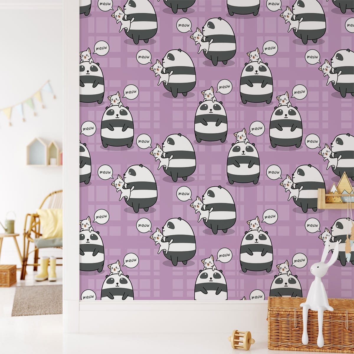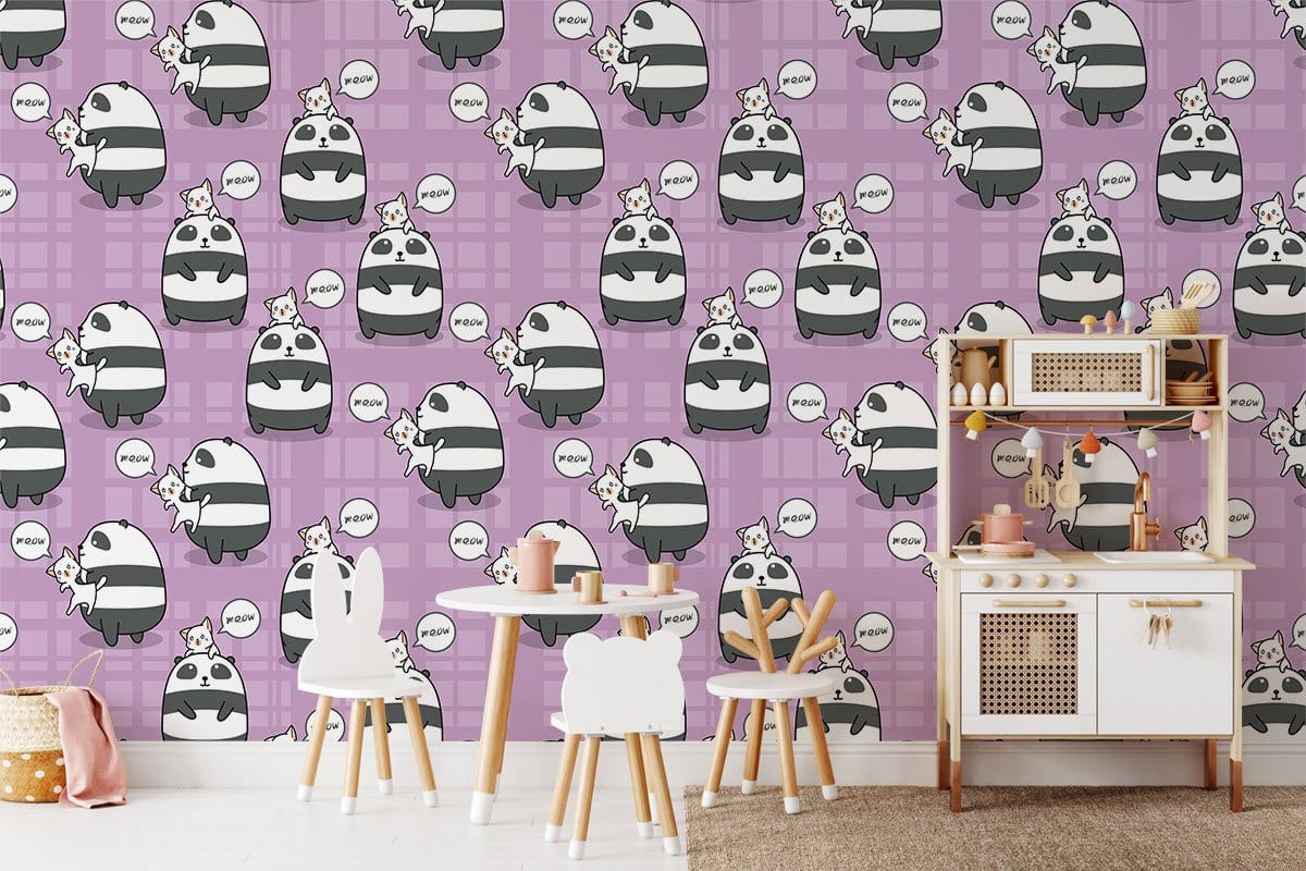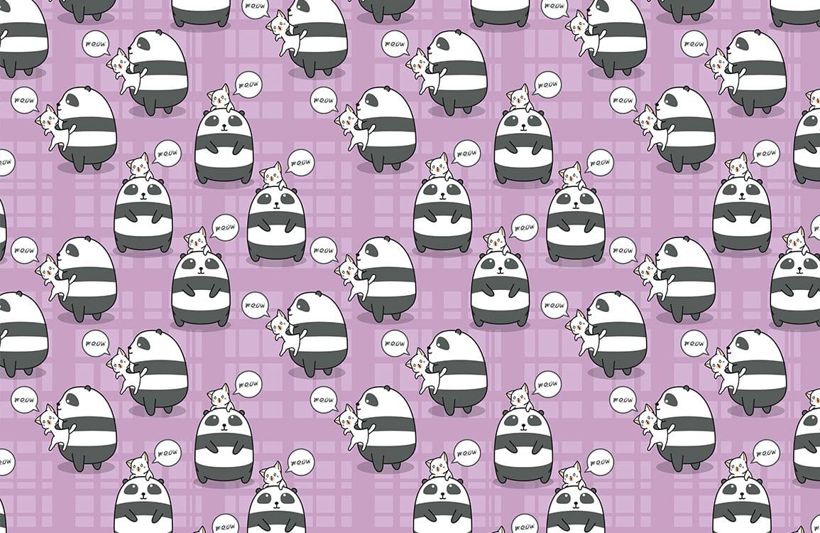 Bring a spectacular vibe to your space with this panda and cat portrait wallpaper mural. The design creates repeated cute pandas & cats pattern under purple background, which will impress everyone who sees it. Use it as a feature wall in your bedroom, living room or kids room and pair it with white or pastel colour furniture.