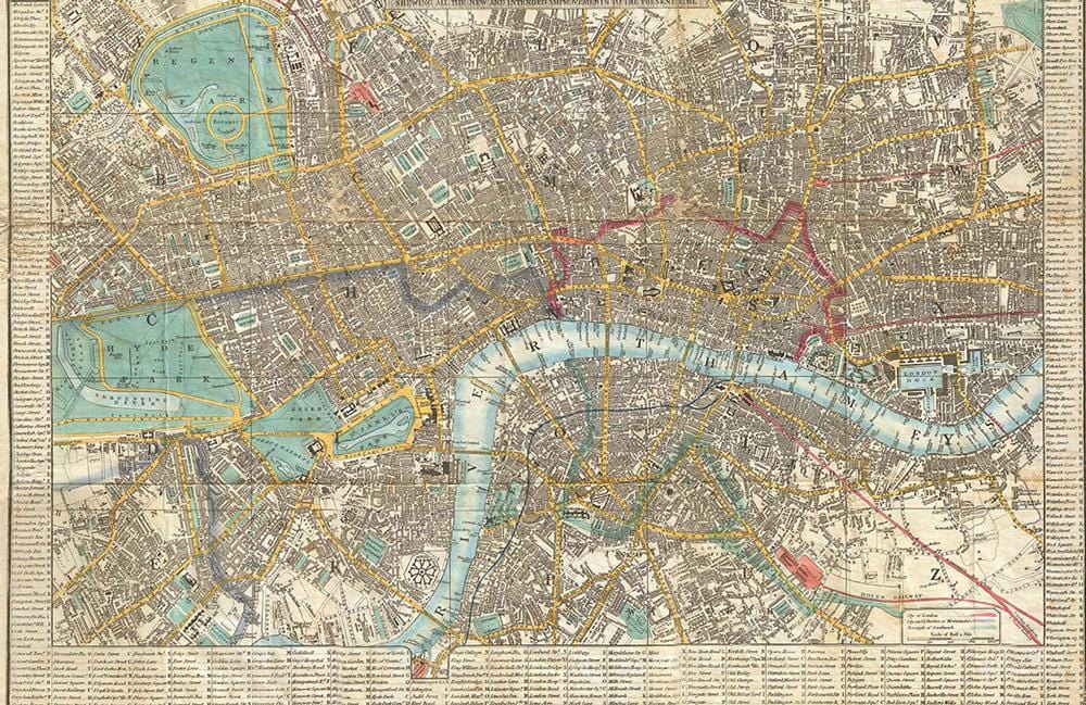 Immerse your space in a rich tapestry of London's historic allure with this wallpaper mural. Intricate street and river details unfold across the canvas, offering a timeless glance at the city's charm. Perfect for adding a sophisticated touch to any room, its artistic design invites exploration and conversation.