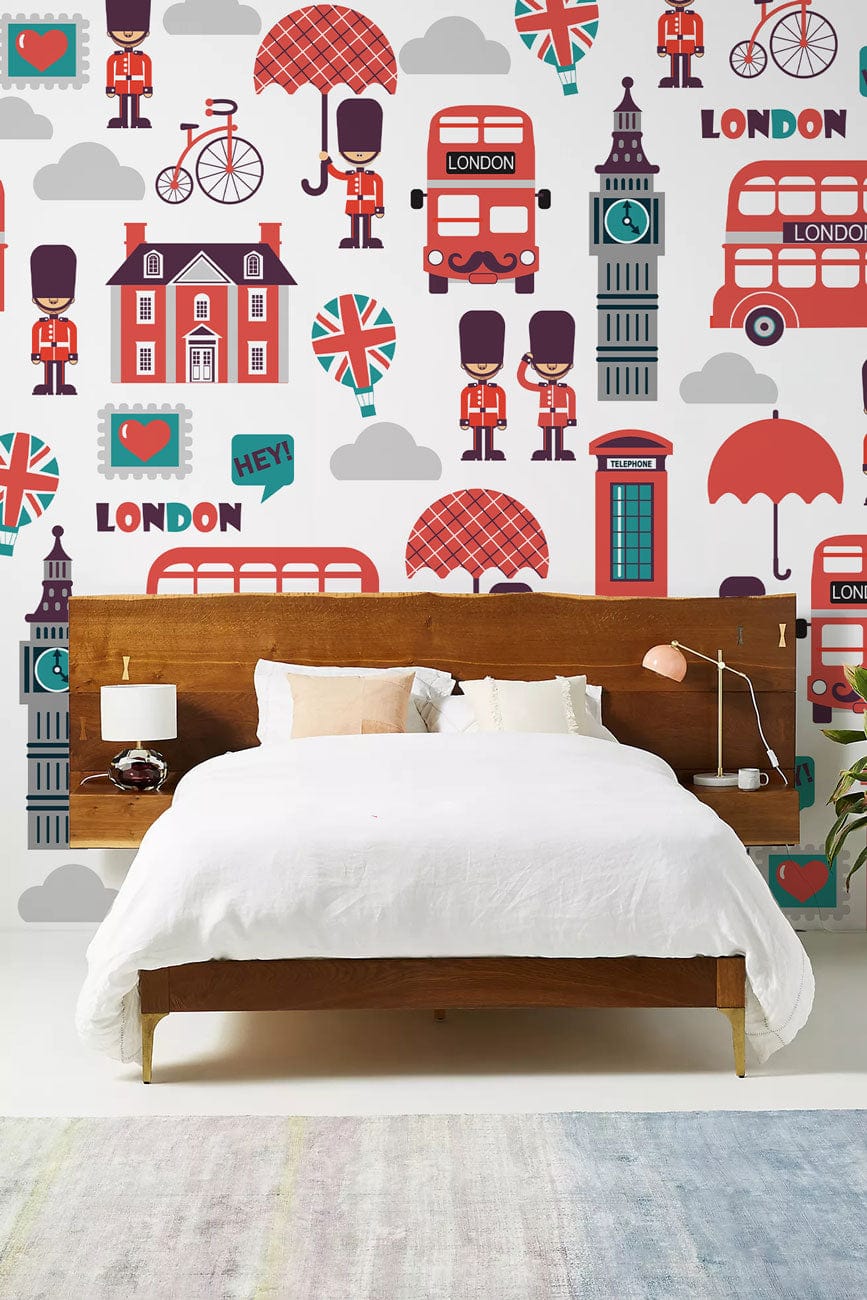 Immerse your space in the charm of the English capital with this London Style Wallpaper Mural. Its playful depiction of iconic London symbols - such as the regal red buses and historic landmarks - offers a lively yet sophisticated nod to British culture. Crisp lines and bold imagery draw the eye, allowing this piece to elevate any room with its whimsical yet timeless appeal.