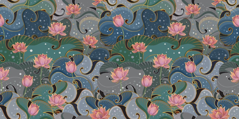 Lotus & Dewdrop Wallpaper Mural presents a captivating interplay of organic patterns and intricate details, where delicate dewdrops subtly enhance the serene imagery of blooming lotus flowers. The mural effortlessly encapsulates a sense of tranquil beauty, offering a sophisticated ambience that complements both classic and contemporary interiors.