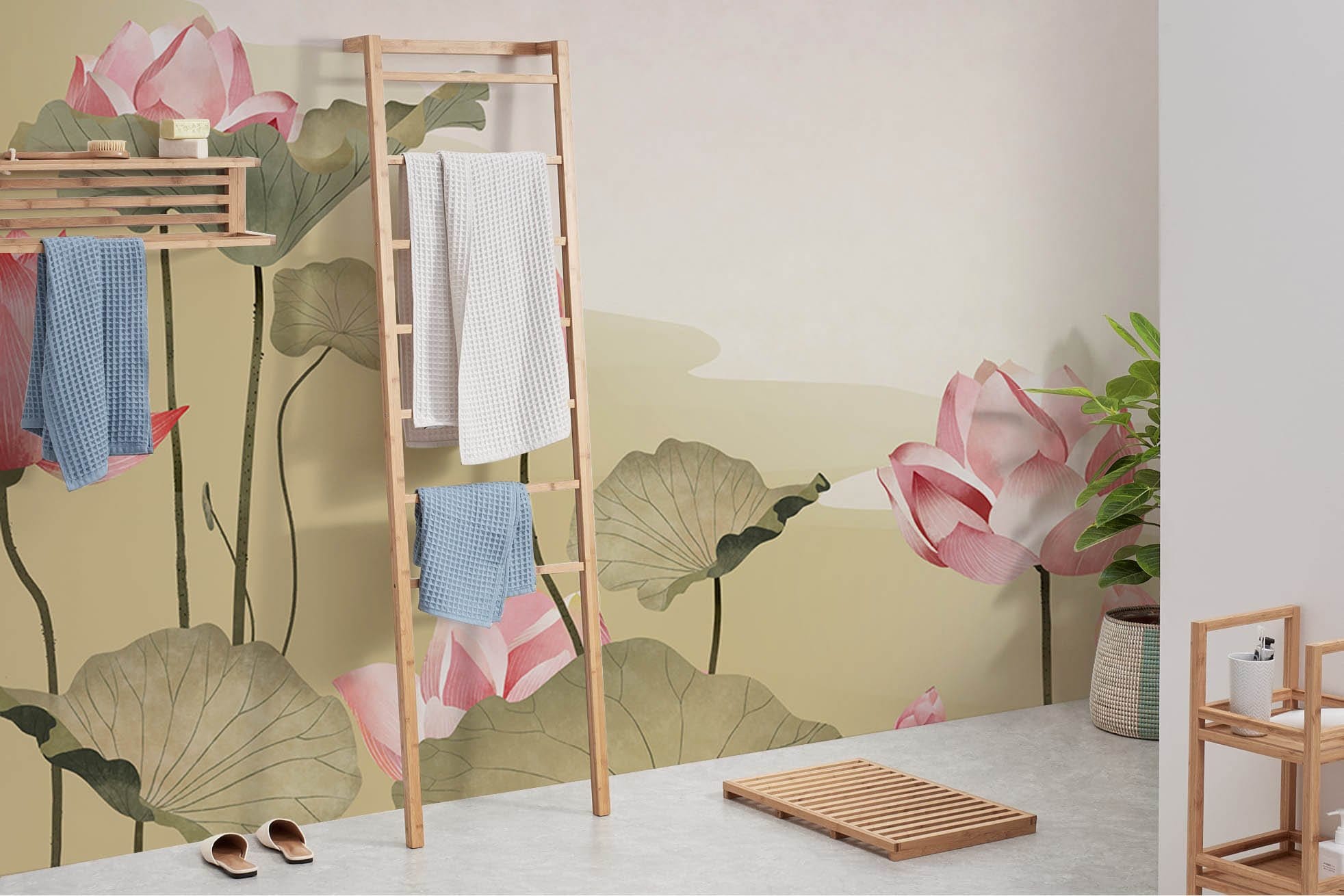 Add a new element to your space with fresh lotus on your wallpaper mural. Now, have these beautiful lotus & leaves adorn your walls in fluid water colours for an enchanting effect. This pleasing wall decal has a positive vibe to it that can improve your mood instantly. Use it in your living room or your bedroom to open up your space.