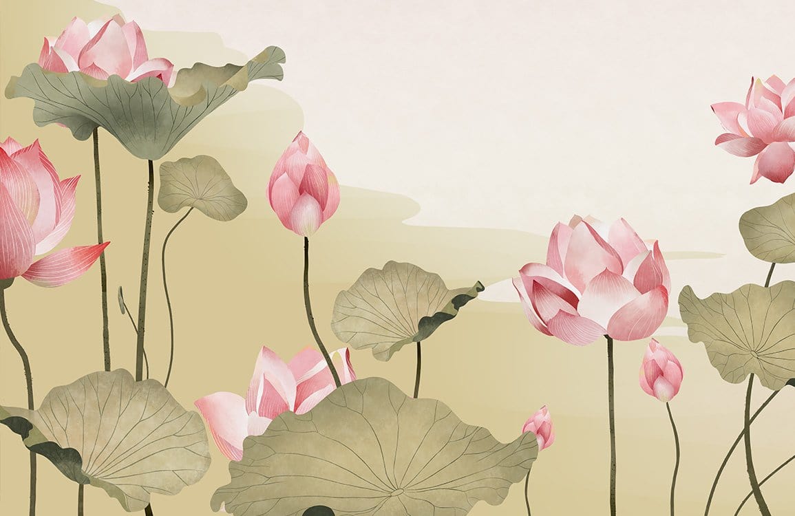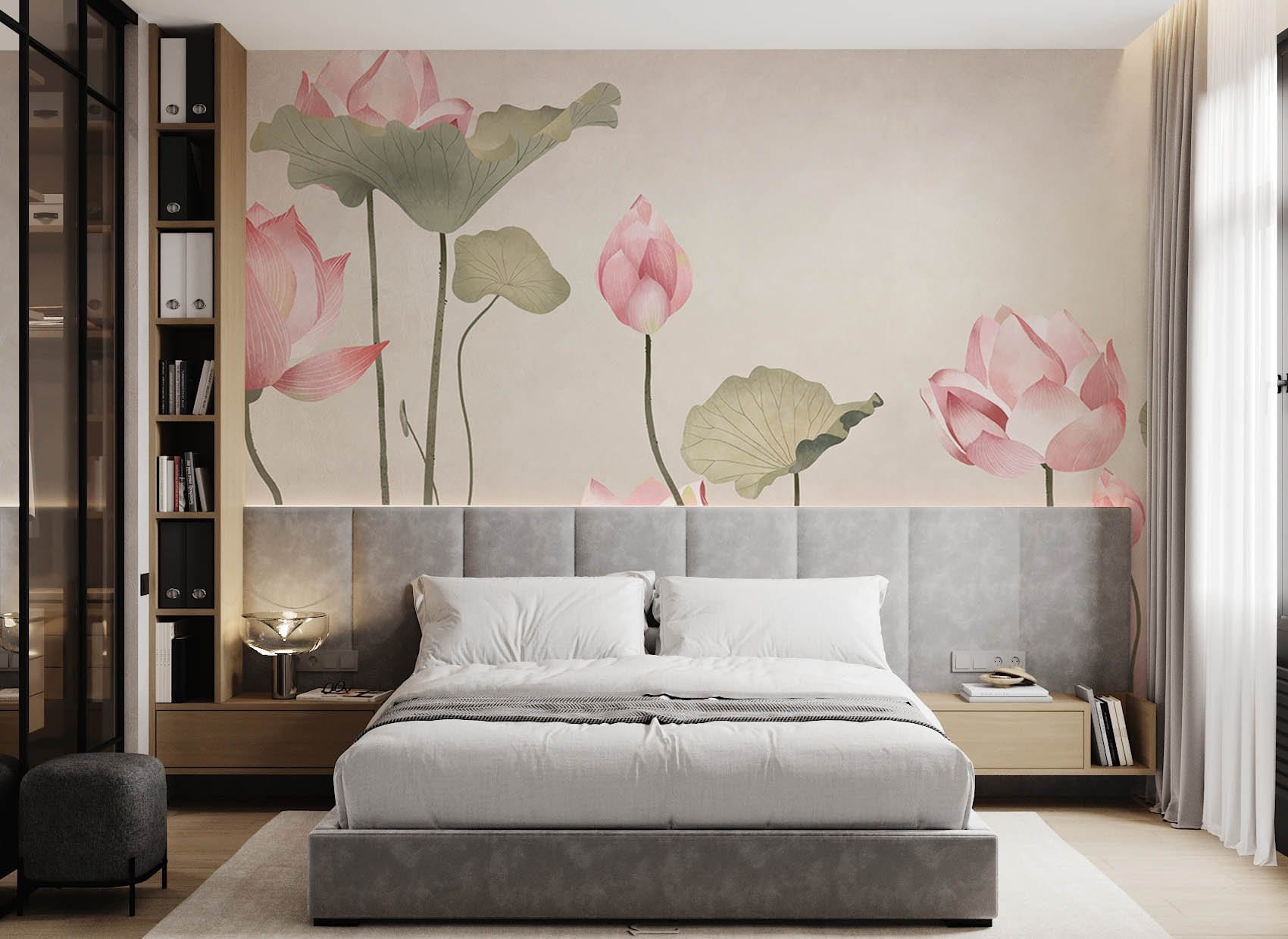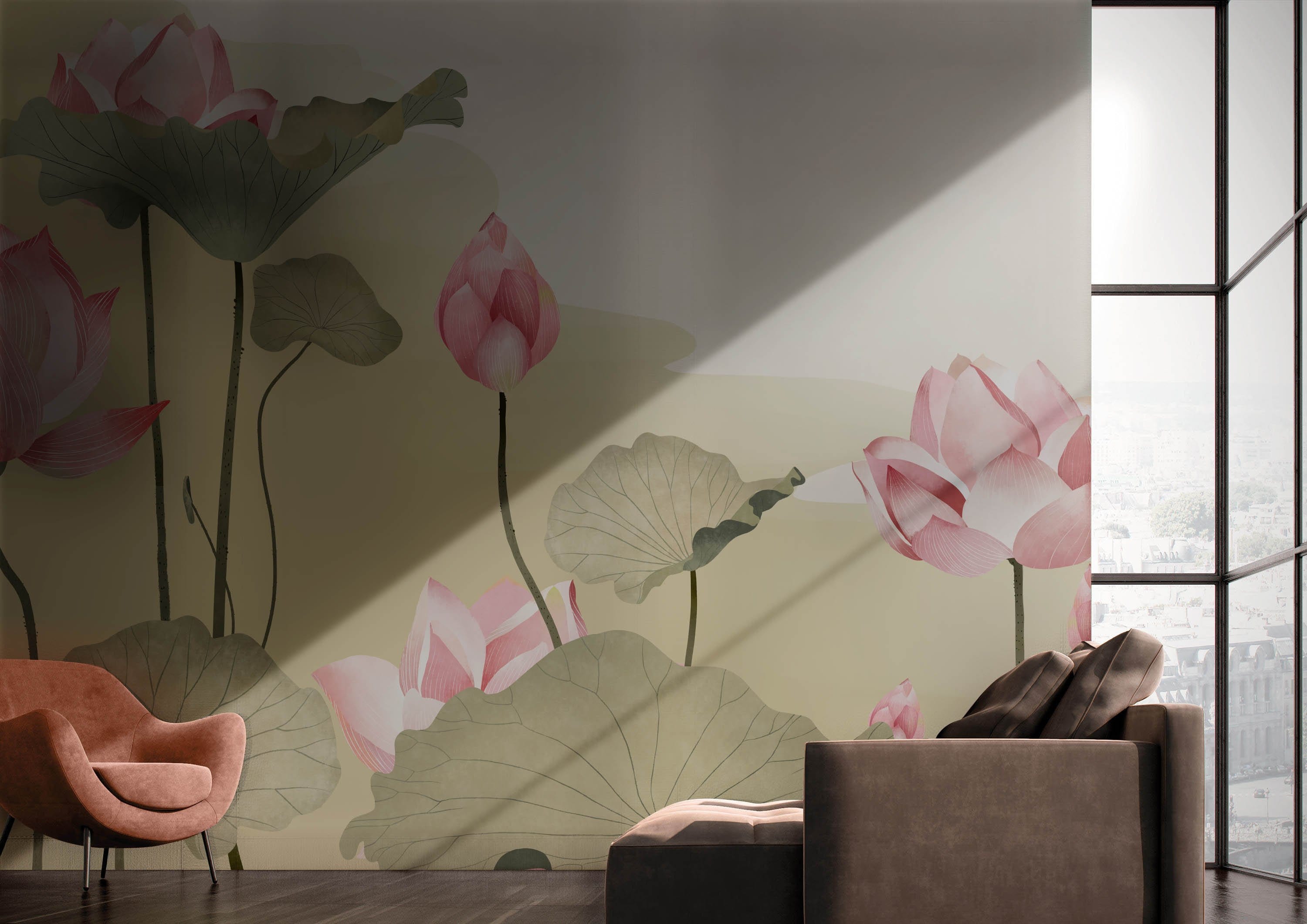 Immerse your space in tranquillity with the Lotus Wallpaper Mural. This exquisite design captures the delicate elegance of lotus blooms against a soft, earthy backdrop. The mural's gentle hues and graceful lines evoke serenity, seamlessly complementing both contemporary and traditional interiors. Ideal for those seeking a serene focal point, its artistic detailing invites calm into any room.