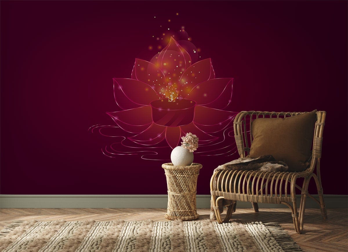 Dive into a serene escape with the Lotus Light Wallpaper Mural, where vibrant pink motifs dance upon a rich maroon backdrop, creating a captivating play of light and floral grace. Perfect for infusing spaces with a soothing yet sophisticated atmosphere, this mural's delicate lines and subtle sparkle invite tranquillity and elegance. It's a statement piece that harmonises beautifully with contemporary or traditional décor.