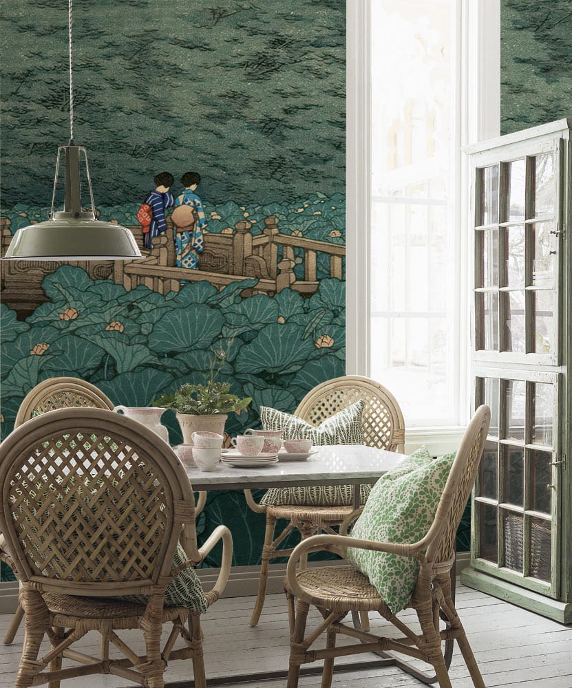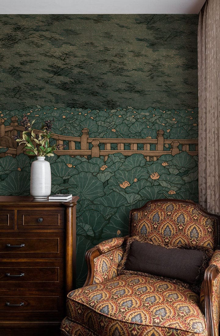 Lotus Pond Stroll Mural Wallpaper