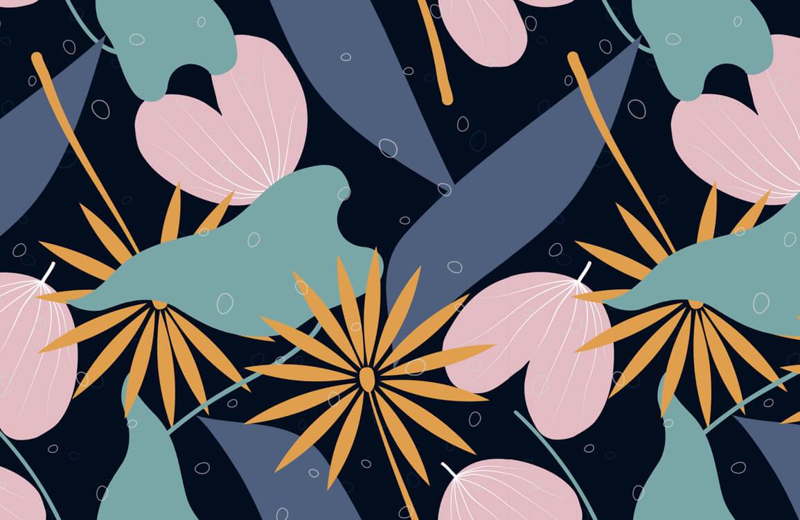 Feel this mixture of simple and abstract from this art deco wallpaper mural. Captivating to the eye, this design combines the beauty of abstract art with on-trend of hear-shape leaves and flowers to bring a stylish flair to level up your interior space. Use this design with any decorations in your bedroom, living room, dining room or hallway.