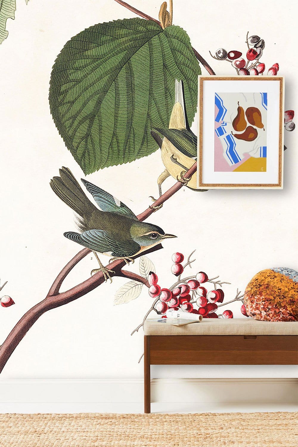 If you want a traditional style wall decor to spice up your space, then choose this on-trend bird wallpaper mural. The cute birds and large leave & fruit motif under a soft beige background give it a fresh and stylish feeling in your rooms. Why not use it for your bedroom, living room or dining hall and pair it with your modern furniture or home decors.