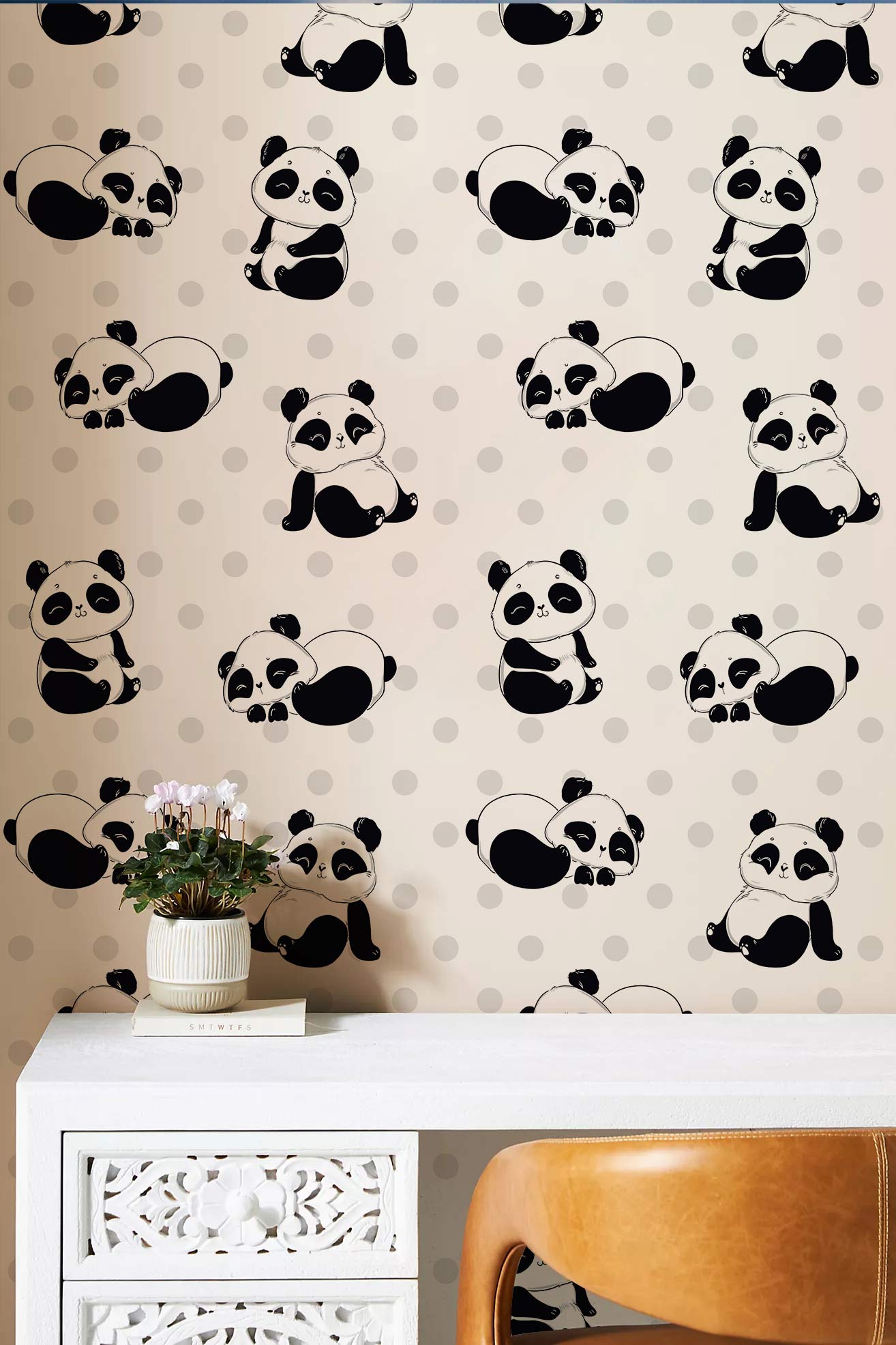 Delight in the whimsical charm of the Lovely Panda Wallpaper Mural, where playful panda illustrations dance across a tranquil background. The refined monochrome palette exudes a sense of understated elegance, making it a sophisticated choice for both contemporary and classic interiors. Adorn your walls with this delightful pattern, perfect for creating a serene and inviting ambience.