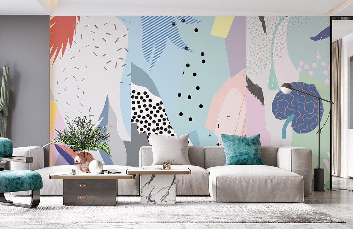 Upscale your living space with this abstract and artful wallpaper mural. The soft macaron colours in random patterns is refreshing in tone yet not too overwhelming, which add more peace and calm in your space. Ideal wall mural for living room and bedroom and pair it with modern furniture and home decors.