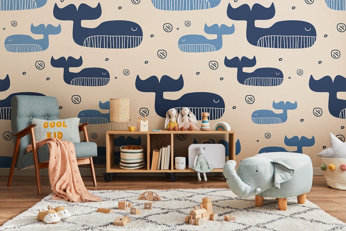 Immerse your space in a tranquil underwater world with the Meditating Whale Wallpaper Mural. Featuring an array of serene whale illustrations in harmonious motion, this design artfully blends whimsy with sophistication. The gentle curves and minimalist lines evoke a sense of peace, making it a captivating focal point for any room.