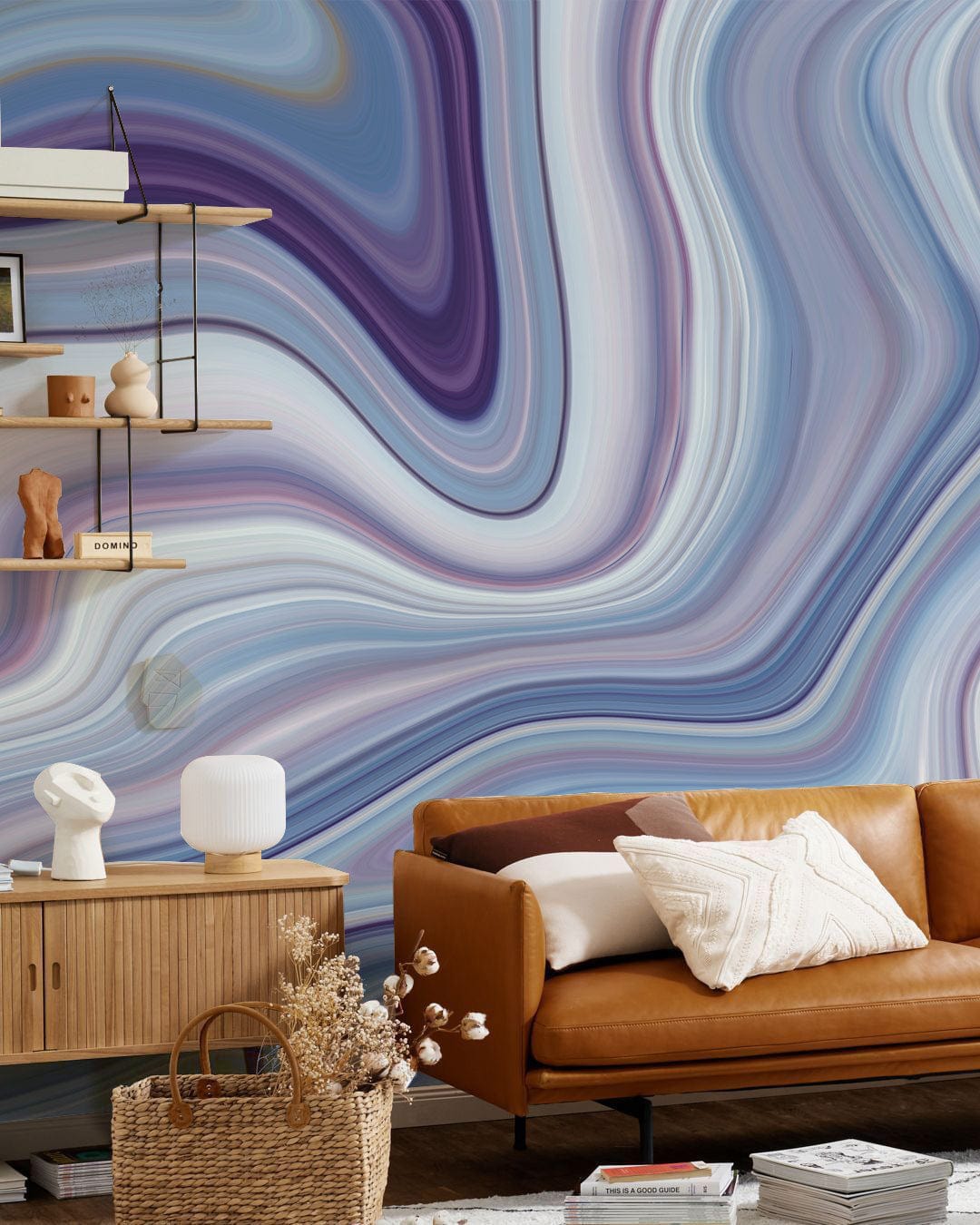 Immerse your space in artistic sophistication with the Melted Purple Marble Wallpaper Mural. Its flowing design mimics the rich swirls of marble, featuring deep purples intertwined with subtle shades of blue and white. This mural offers a timeless elegance, making it perfect for modern and classic interiors alike.
