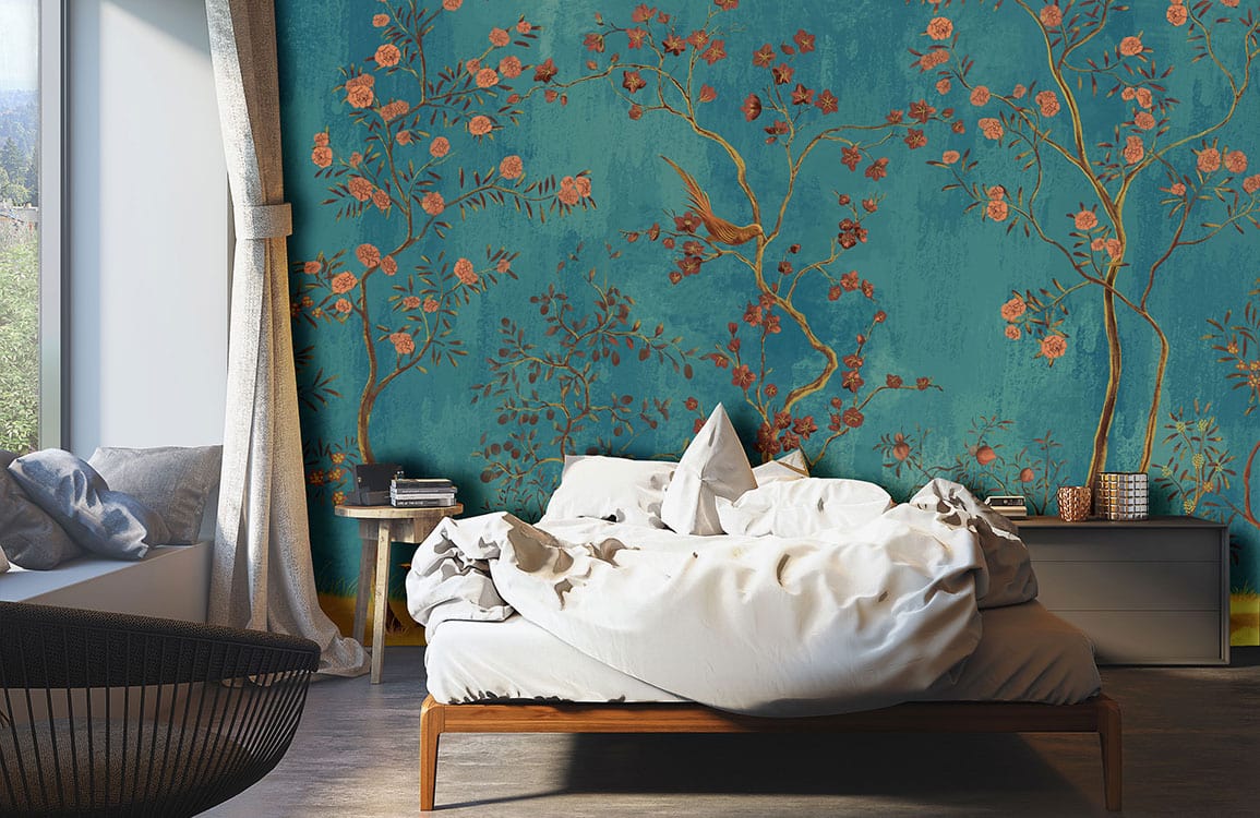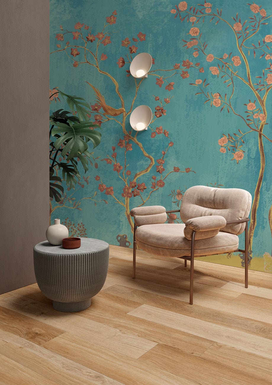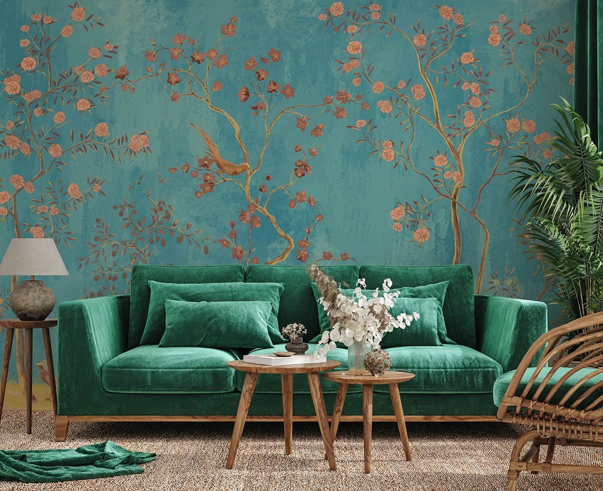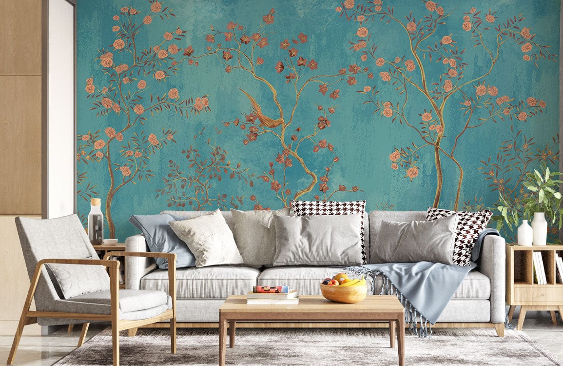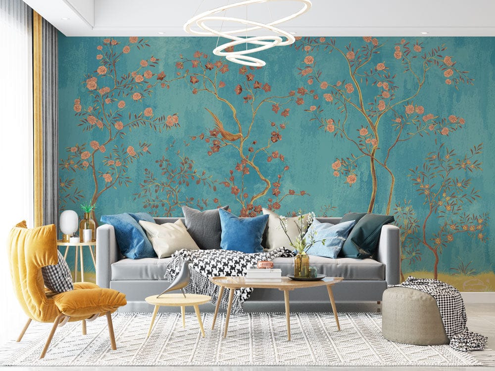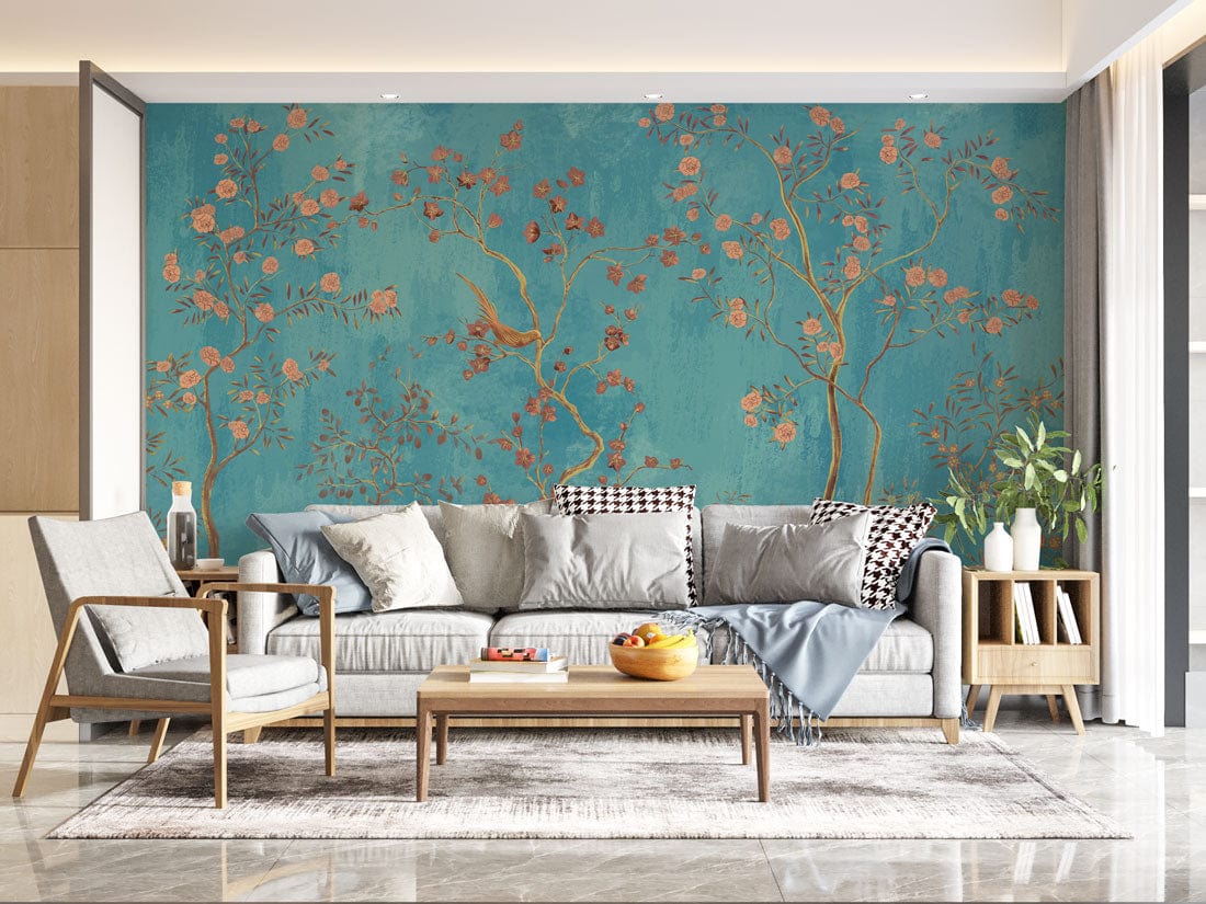 The Merry Bird Wallpaper Mural invites nature into your home with exquisite artistry. Graceful trees adorned with delicate blossoms and charismatic birds set against a serene azure background evoke a sense of timeless elegance and tranquillity. Every detail tells a story of serenity, making it a perfect addition to any refined space seeking a touch of the outdoors.